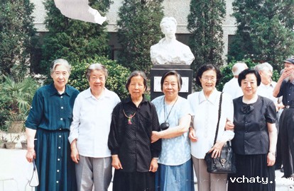 王光美(左一)全国政协委员,刘乃和(左二)北师大教授,李菊萍(右三)北京人艺一级演员,李玲颖(右二)分析化学家,张洁珣(右一)曾任全国妇联副主席、全国政协常委。