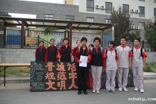 5月13日,我校初二年级12名学生参加了“2007年北京市中小学生科技英语创意大赛团体表演”区级预选比赛。