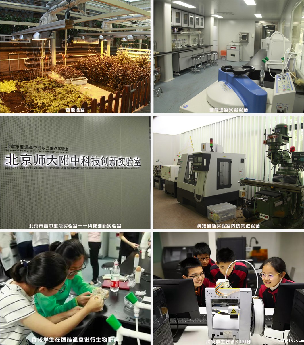 为了适应科学技术的发展,学校不断更新科技活动所需设备、器材。我校科技创新实验室是北京市中学重点实验室,实验室中的3D打印机、数控机床为实现同学们的发明和设想提供了可能。学校内有一个现代化的小型智能温室,并配套一个分子生物学实验室。每天午休时、放学后,这两个高端实验室里都活跃着科技社团成员的身影。
