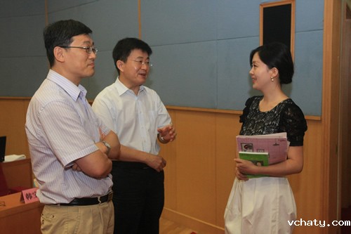 张媛媛老师课后与专家交流 (左一:韩宝成教授 左二:霍庆文教授)