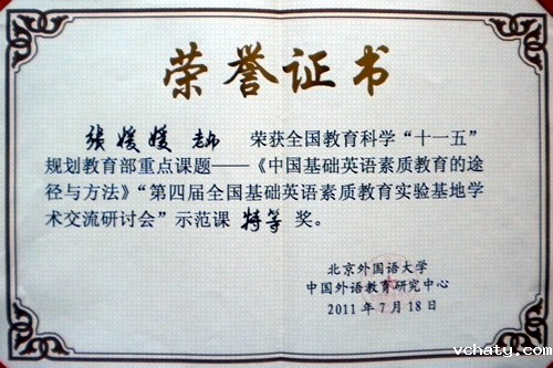 《中国基础英语素质教育的途径与方法》是全国教育科学“十一五”规划教育部重点课题,由教育部人文社科重点研究基地——北京外国语大学中国外语教育研究中心主持开展。我校英语组张媛媛老师承担了该课题的子课题之一——“语感阅读法与阅读能力提高”的研究。