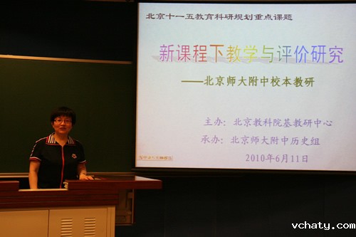 2010年6月11日,我校历史组承办了北京市十一五重点课题“新课程下教学与评价研究”与校本教研结合的展示活动。历史组提供了三节研究课,分别是卫刚老师的常规课《二战后苏联的改革》、冯健老师的史料研习课《走近两宋社会――研习史料,感悟历史》、李静老师的辩论课《中国古代中央集权制是利大于弊还是弊大于利?》。课后,李静老师还以《在历史教学研究中成长》为题,介绍了师大附中历史组多年来参加课题研究的经验和取得的丰硕成果。来自十几个区的老师、教研员进行了热烈的讨论。对三节课给予了很高的评价,认为这三节课充分体现了新课程的特点,结合了学生的情况、考虑了学生发展的需求,具有创新性和开创性。与会的老师对历史组的老师团结合作、业务功底深厚给予了充分肯定,认为这三节课敢于挑战历史教学中的难点即是团队业务能力的体现。最后,市基教研中心教研员张静老师对本次活动进行了总结。