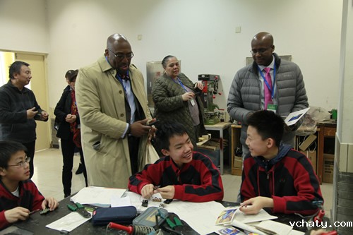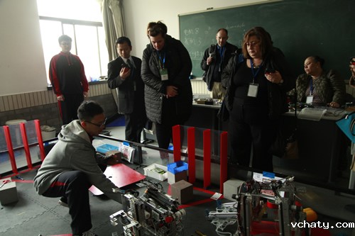 纽约校长团首先在交流中心老师们的带领下参观了我校的文化设施和学科专业教室,他们还观摩了张跃华老师的科技课、外教Albert 和Andrew的AP课,并与学校机器人社团的学生们进行了互动交流。通过参观活动,来宾们对我校浓郁的文化氛围以及我校学生阳光向上的精神风貌有了更深入的了解。