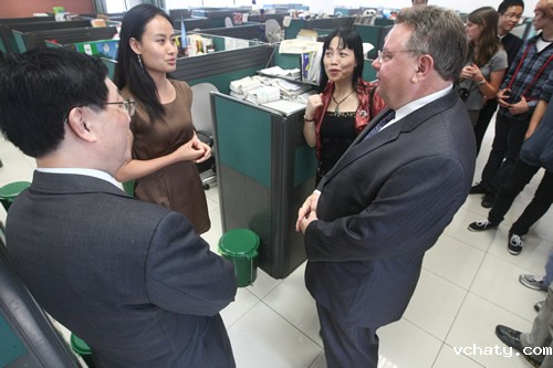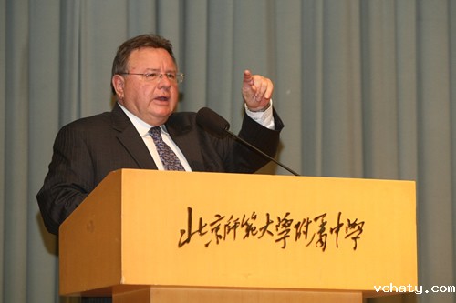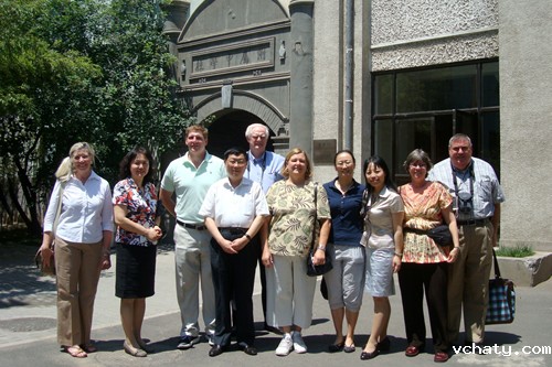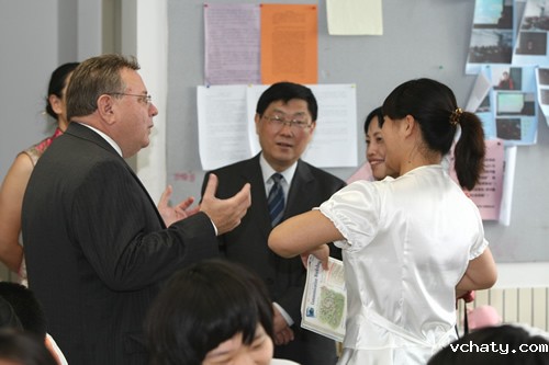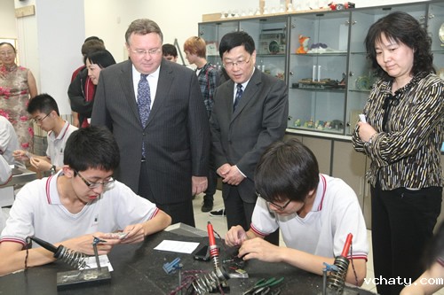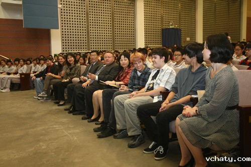 访问团一行深入课堂听课,观看了我校学生精彩的文艺演出,参观了美丽的校园,和我校师生进行了亲切交流。本杰明・富兰克林高中校长Rusnak博士为我校高一年级学生做了有关美国历史和教育的讲演,并诚挚邀请附中学子到美国学习交流。同学们听得兴趣盎然,并在提问环节和Rusnak博士进行深入互动。Rusnak校长对我校师生的高素质以及优秀的校园文化建设给予高度赞扬。