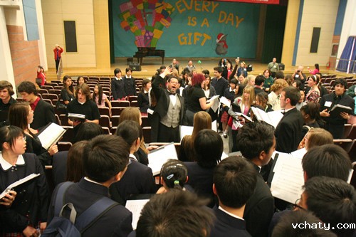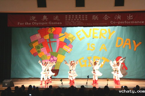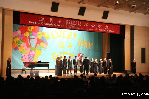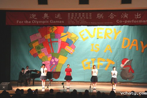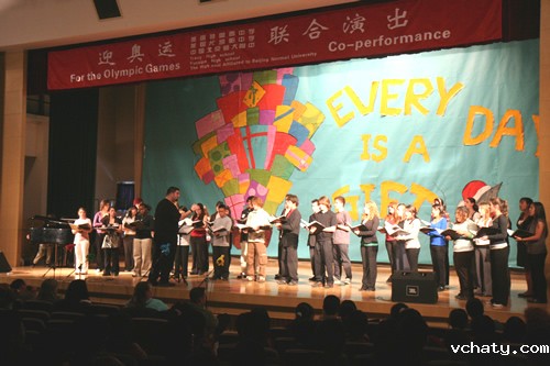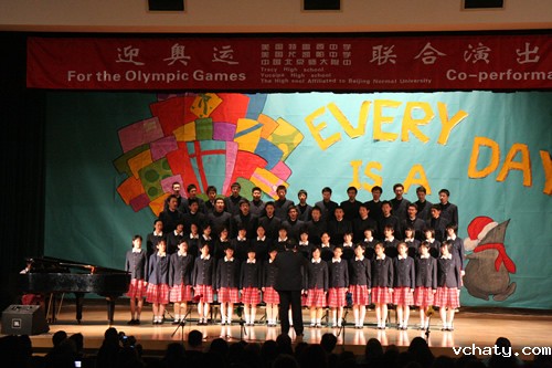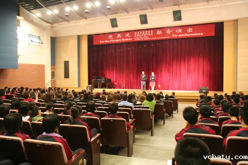 3月17日,美国特蕾西高级中学合唱团和尤凯帕高级中学合唱团来到我校,与我校“附中人”合唱团、青杉舞蹈团进行了“迎奥运・三校联合演出”。美国同学表演了黑人民歌、乡村音乐合唱及无伴奏合唱,他们的演唱赢得了我校师生的热烈掌声。我校高中合唱团及舞蹈团也表演了自己的获奖节目。中国国家交响乐团少年及女子合唱团艺术指导唐重庆老师也参加了此次交流活动,并对三方的表演给予了充分的肯定,最后三校共同合唱中国歌曲《大海啊故乡》,将气氛推向了高潮。