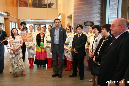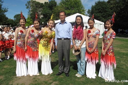 受加中文化友好交流协会邀请, 我校舞蹈团师生26人在刘沪校长的带领下于7月27日――8月1日赴加拿大参加了由我国驻加拿大使馆及总领馆举办的庆祝中加建交40周年文艺演出。在多伦多richmonhill剧场和渥太华市政广场,同学们克服长途跋涉的艰辛,完美演绎了《天路》、《远方的客人请你留下来》、《鱼儿》、《高高的苗岭》、《竹之梦》、《杨柳青》等不同风格的舞蹈,受到了当地华人华侨和加拿大人民的热烈欢迎和高度赞扬,掌声、叫好声连绵不绝。演出结束后,观众们久久不愿离去,纷纷上前与我校演员合影。我驻加拿大大使馆文化参赞亲切接见了舞蹈团师生并与同学们合影留念。他感谢同学们不远万里来到加拿大用美妙的舞姿传播中华文化、传递中国人民的友谊。刘沪校长向驻加拿大大使馆赠送了我校黄全信老师的书法作品和学校画册。加方市长、议员等知名人士观看了演出。