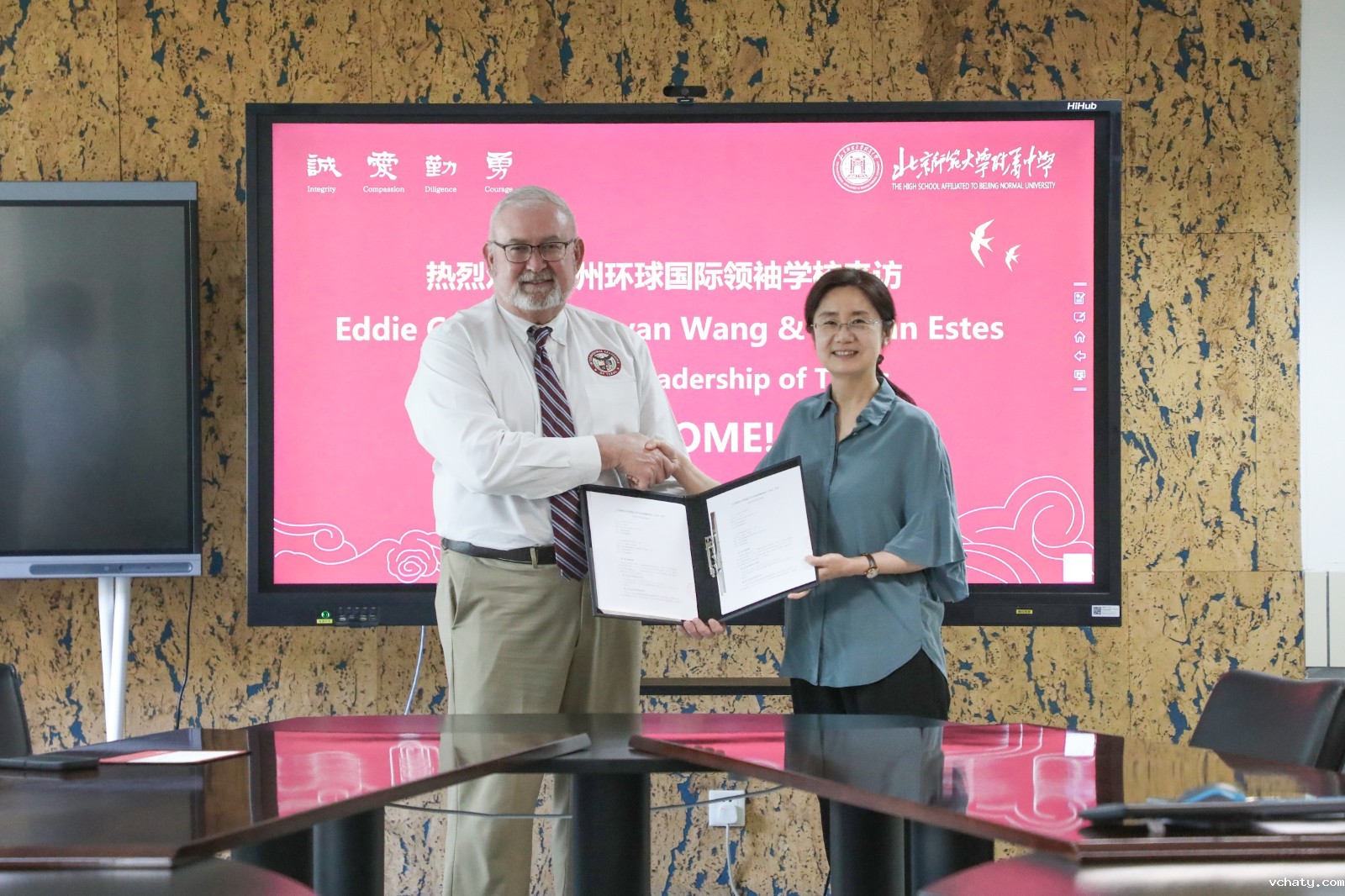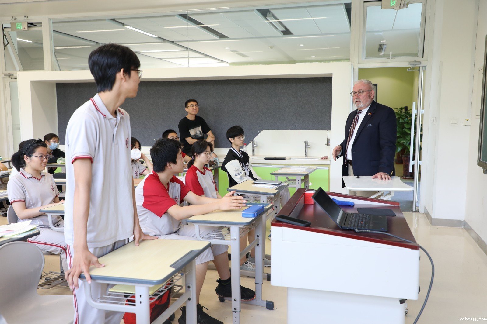 2023年6月15日,美国德州国际领袖学校的学监Conger先生一行三人来我校访问。该校是我校中美合作高中课程项目(AP班)的合作校。