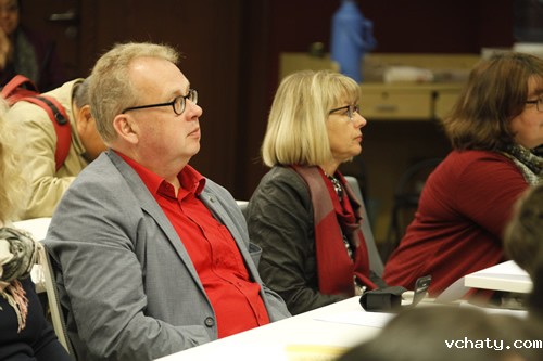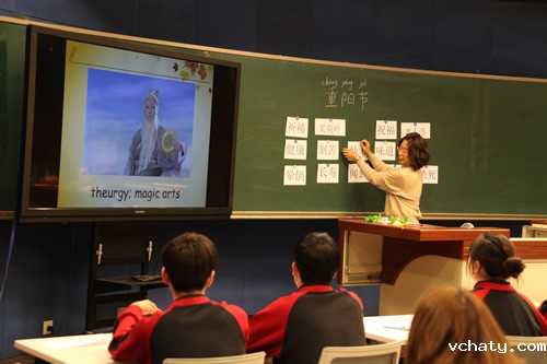 袁琳老师的汉语课是一节介绍重阳节的中国文化课。精心的课堂设计和热烈的学习气氛,使德国校长们对中国的节日文化也充满了兴趣。课后,我校德国留学生尼可同学向校长们介绍了他一个多月来的汉语学习情况和在北京的生活情况。
