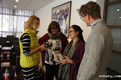 在随后举行的座谈会上,王莉萍校长首先代表学校致欢迎辞,并介绍了学校概况、办学理念、教师海外培训和国际交流情况。王校长还特别提到,近十年来,我校先后有10位教师赴德国友好校任教,德国留学生数量累计达到24人。国际部教研组长顾洁老师也向德国校长们详细介绍了我校的汉语课程设置、教材的编写及文化活动的开展情况,受到来宾们的一致好评。德国校长团希望与附中在汉语教学和汉语教师培训方面进行深入合作,我校也将继续与德国学校开展多方面的学习交流活动。