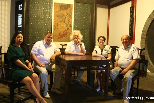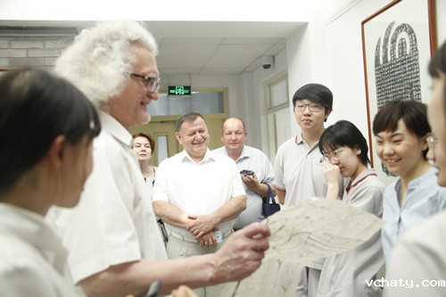 随后,外宾们在交流中心老师的带领下参观了文化设施和学科教室,在美术教室,来宾们对学生的美术作品赞叹不已,并认为附中的环境特别适合于学生的艺术创作;在音乐教室,周红苇老师带领学生一起演唱了“花非花”,对远方客人的到来表示热烈的欢迎和深深的祝福……