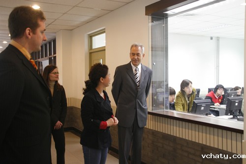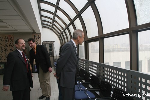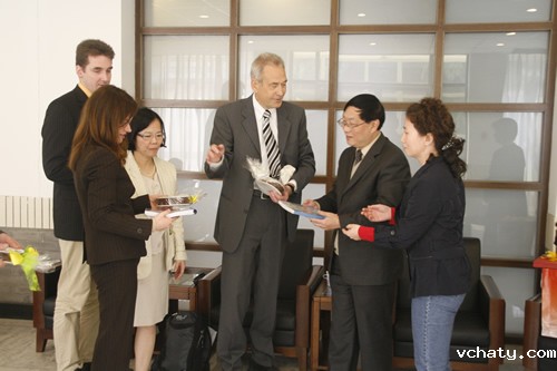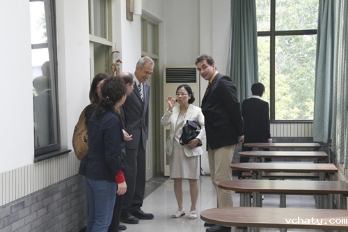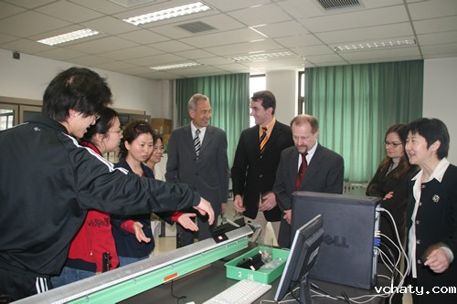 4月28日,德国吉森市赫尔德文理高中校长Gatb先生率领该校领导和教师一行五人来我校访问,刘沪校长、顾咏梅校长助理、冯健主任等与客人们就建立两校友好合作关系事宜进行了亲切的会谈。会谈之后,客人们参观了学校设施,对我校优美的校园环境和先进的教学设备给予了高度的评价。