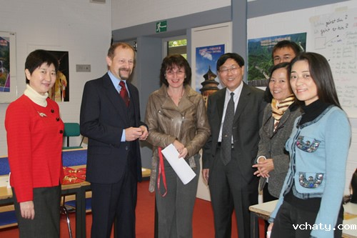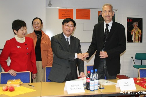 9月30日,刘沪校长率我校访问团一行七人访问了德国黑森州吉森市赫尔德文理中学,受到该校领导和师生的热烈欢迎。在访问中,两校签署了缔结姊妹校的友好协议,协议中包含开展双方校际合作、师生交流等项内容。吉森市两家报纸对签约仪式进行报道。我校访问团成员在Dieter Gath校长陪同下参观校园、听课,并与师生会面。赫尔德文理中学是当地一所优质公立学校,全校从小学到高中共有1500名学生,140名教师与职员。今年4月,Dieter Gath校长曾率赫尔德文理中学访问团来我校访问。