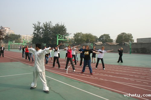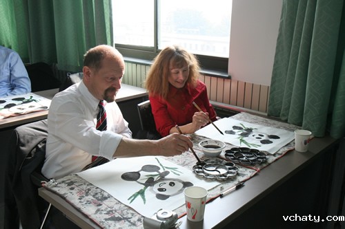 10月24日,友好校德国吉森市赫尔德文理中学师生24人来我校访问,他们在我校学习中国武术和国画,并与初二(6)班同学进行了热烈的交流。