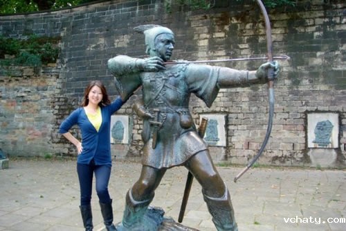 拍摄于诺丁汉,旁边是“绿林英雄”罗宾汉。