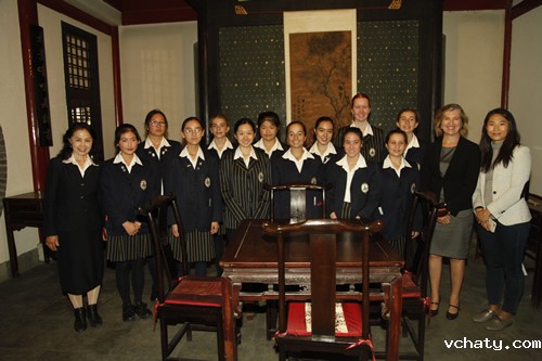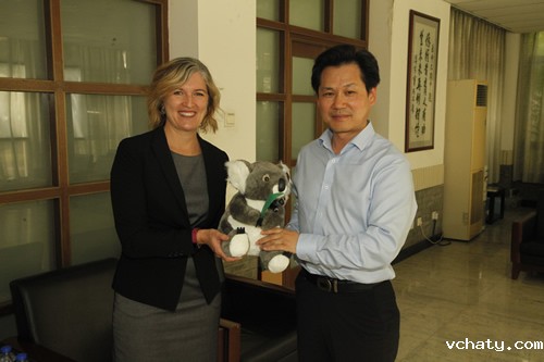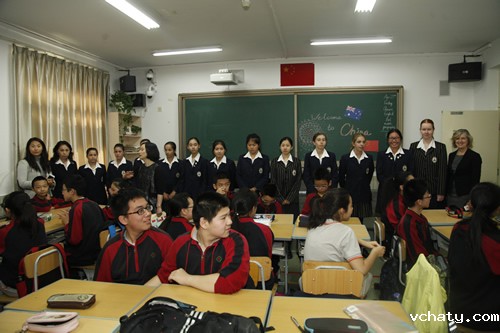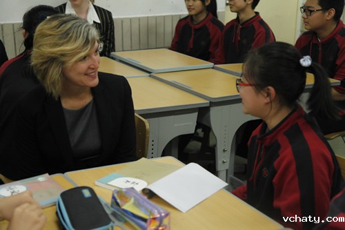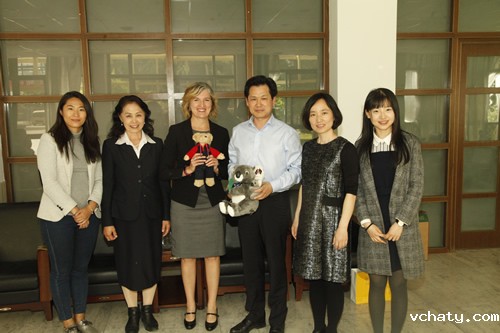 4月27日上午,澳大利亚育文武女校历史部主任 Catherine Arends女士、中文部白彦主任和郭媛媛老师带领该校12名学生来我校交流访问。