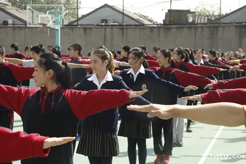 育文武女校的师生们首先来到初二12班,与该班学生一起上了一节马楠老师的英语课。精心的课堂设计和丰富的课堂活动为两校学生提供了良好的学习交流平台,同学们不仅学到了知识,而且加深了对彼此的了解。育文武女校师生还体验了具有中国特色的课外活动――课间操,参观了我校的文化设施和学科专业教室。随后,在接待室举行的欢迎仪式上,梁原草副校长代表学校对育文武女校师生的到来表示了热烈的欢迎,并介绍了学校的办学理念和国际化教育现状。育文武女校Arends主任对我校全人格教育理念表示赞同,并期待未来能够与我校开展更加深入的师生交流项目。最后,双方互赠学校吉祥物,并合影留念。