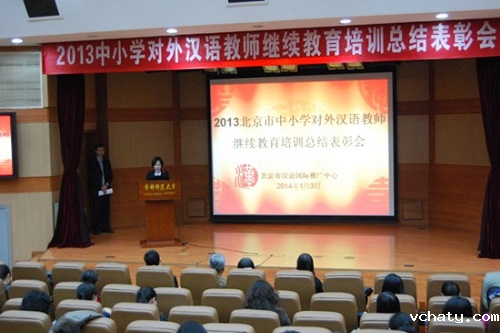 北京市教委人事处崔启超、首都师范大学国际文化学院林秀琴副院长和近百名对外汉语教师出席总结表彰会。