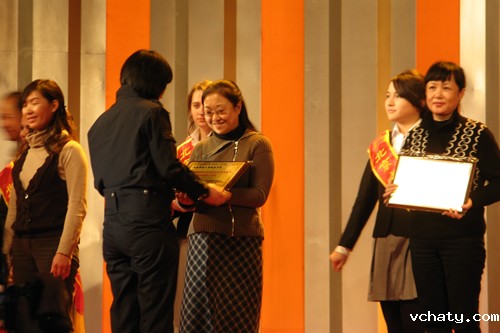 顾洁老师代表我校领取2008中小学汉语节优秀组织工作奖