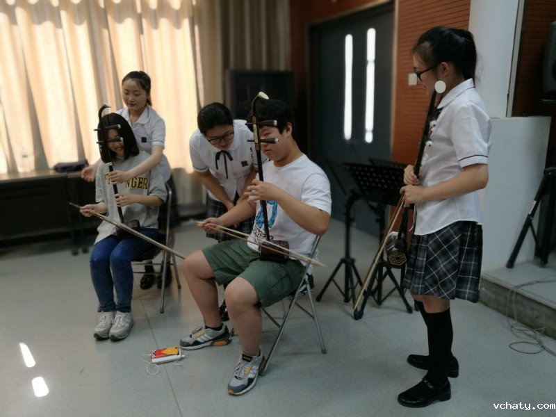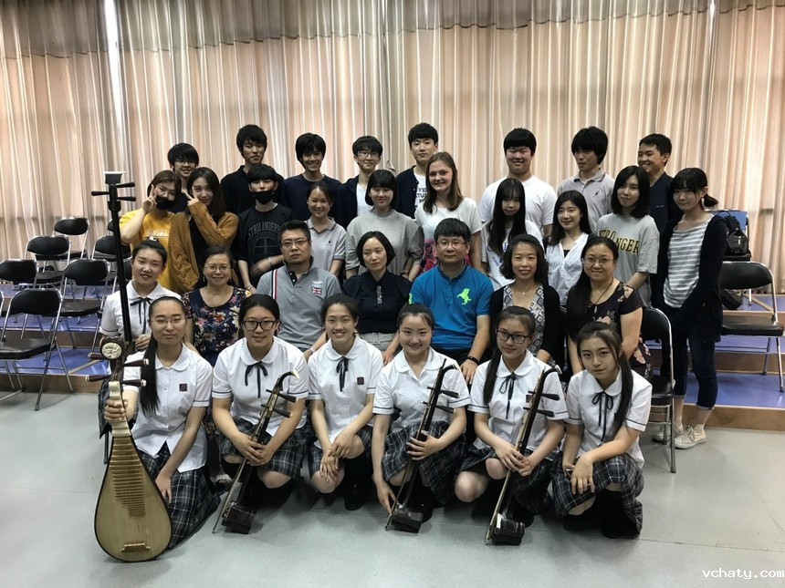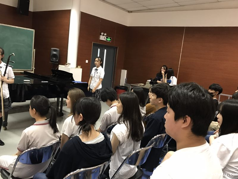 2017年5月26日,詹俊峰,刘睿博两位老师带领中国音乐学院附中高二年级学生来到我校,与师大附中国际部学生进行中国民乐文化交流。中国音乐学院附中的学生们为留学生展示了中国古典音乐的乐器演奏,二胡、琵琶、三弦、板胡、钢琴等乐器在学生们的手上流淌出了优美的旋律,深深吸引了附中的学生,大家都看的目不转睛。演奏过后,留学生们与中国音乐学院附中的学生们组成小组,学生们纷纷围在乐器周围学习、感受和体验中国古典乐器之美。通过此次交流,留学生们更加了解到中国,了解到中国文化。