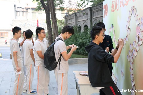 校团委、学生会还共同举办“祖国,我想对您说”祝福祖国活动。9月29日清晨,同学们将一颗颗承载自己对祖国美好祝愿的心形卡片激动的张贴在祖国的版图上,每一张卡片都表达着同学们悠悠的爱国心,浓浓的家国情,深深的报国志。