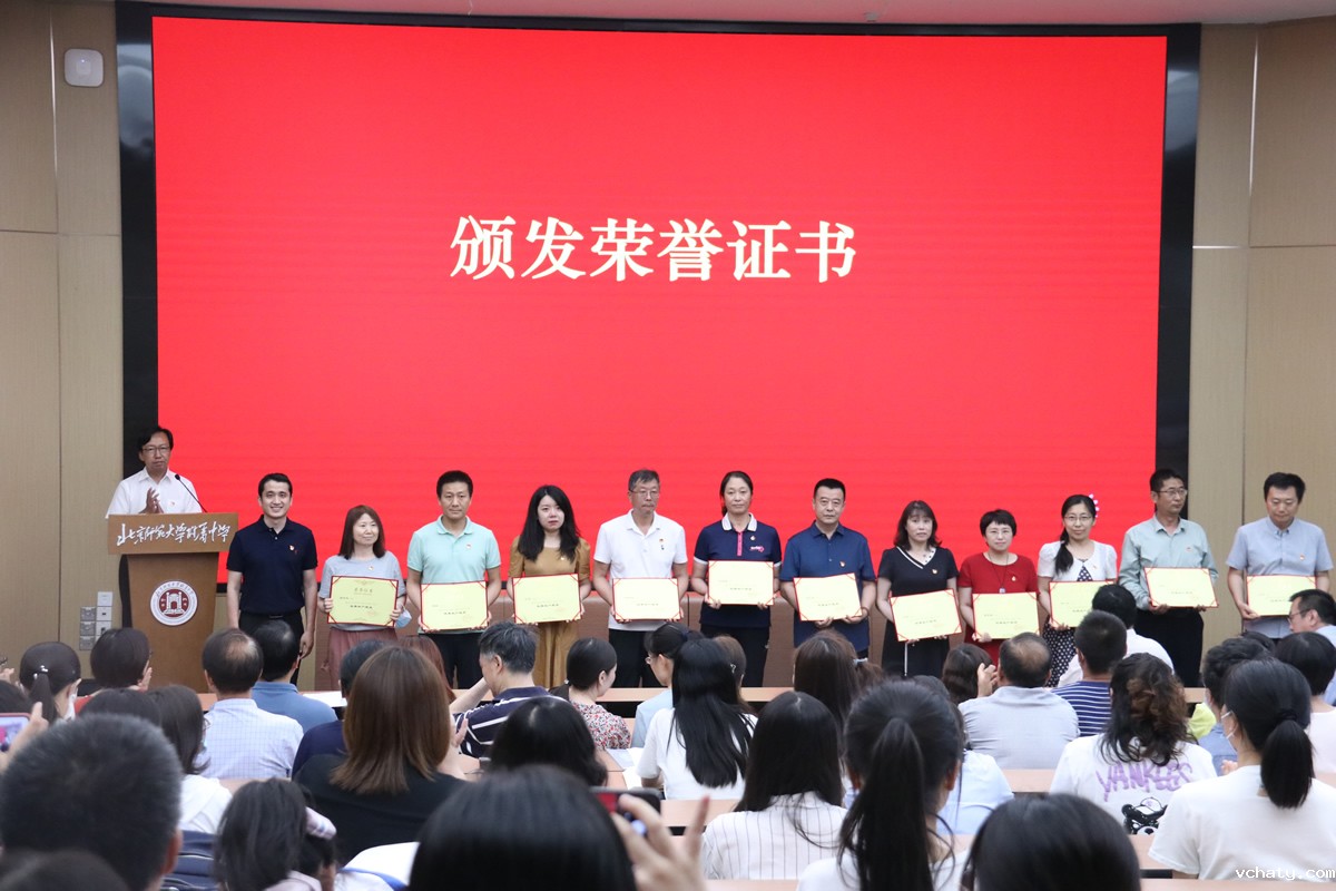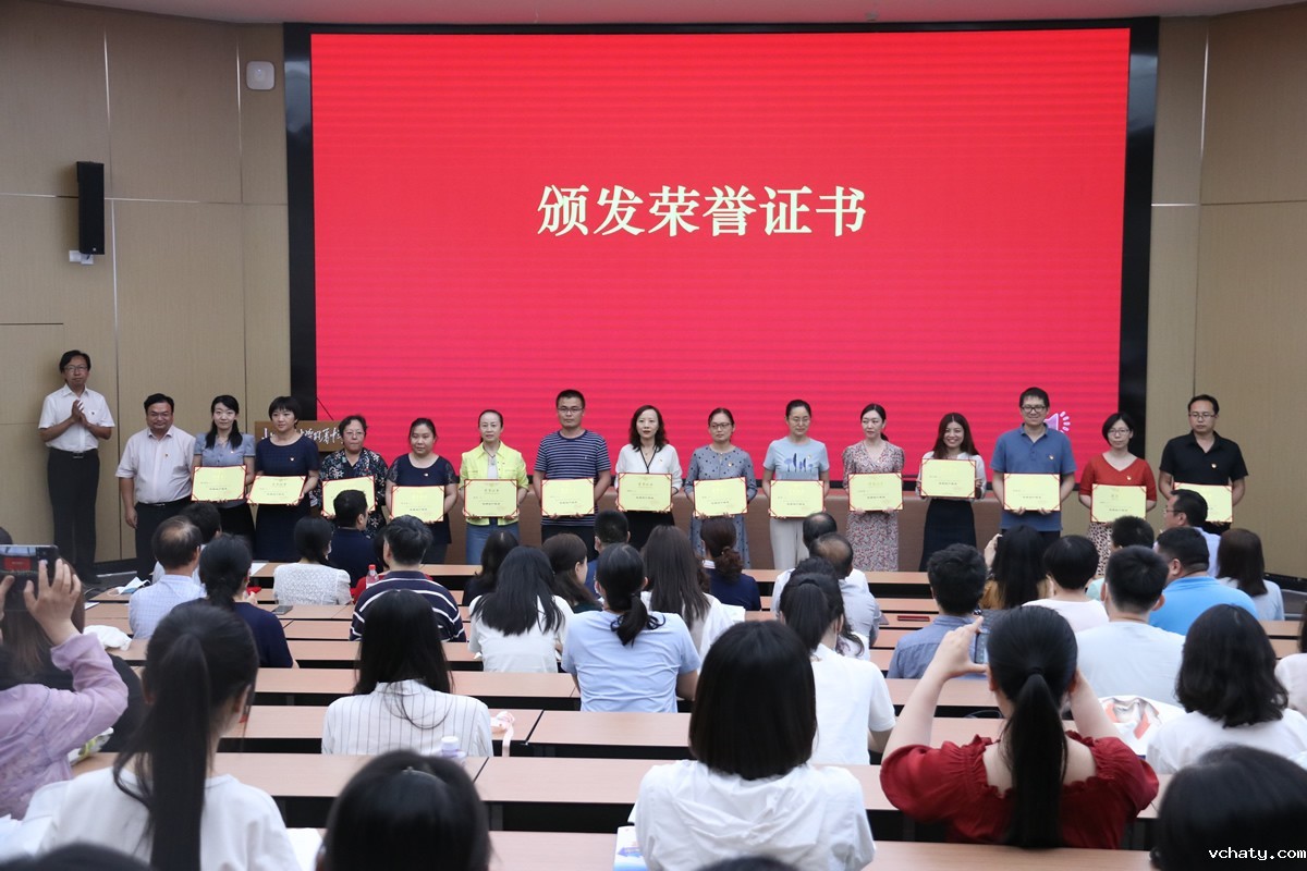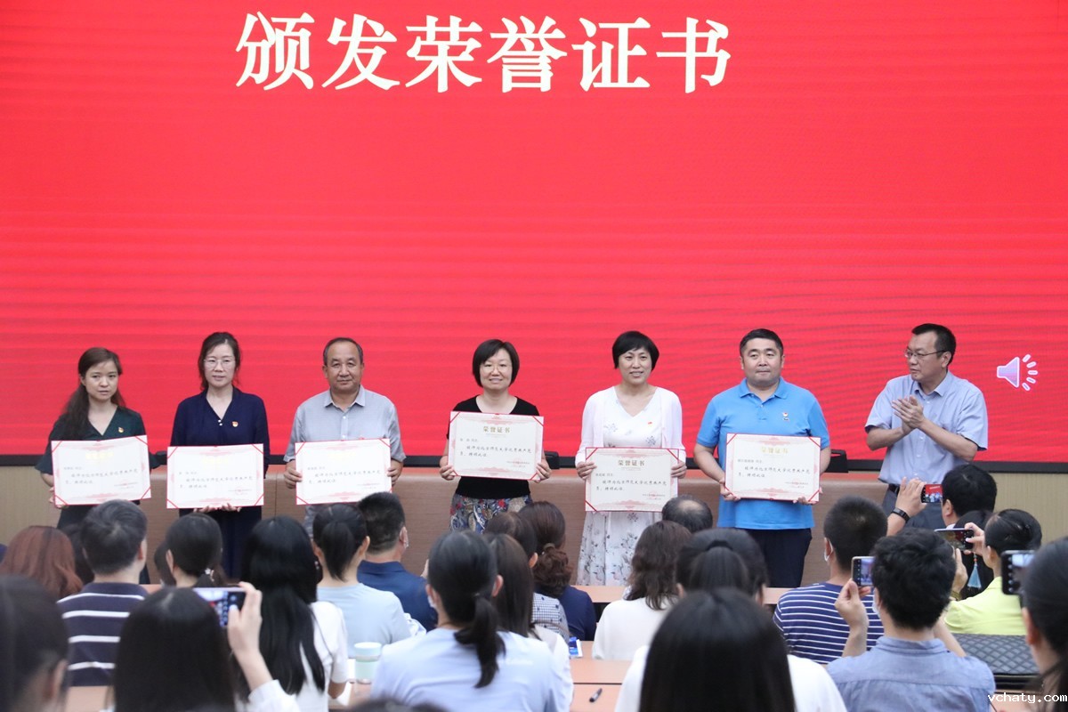 2021年6月30日下午,我校在南阶梯隆重召开庆祝中国共产党成立100周年暨表彰大会。全体在职党员,离退休党员代表等180余人参加大会。