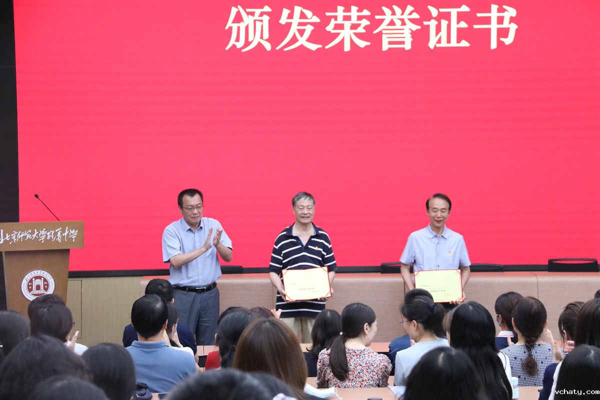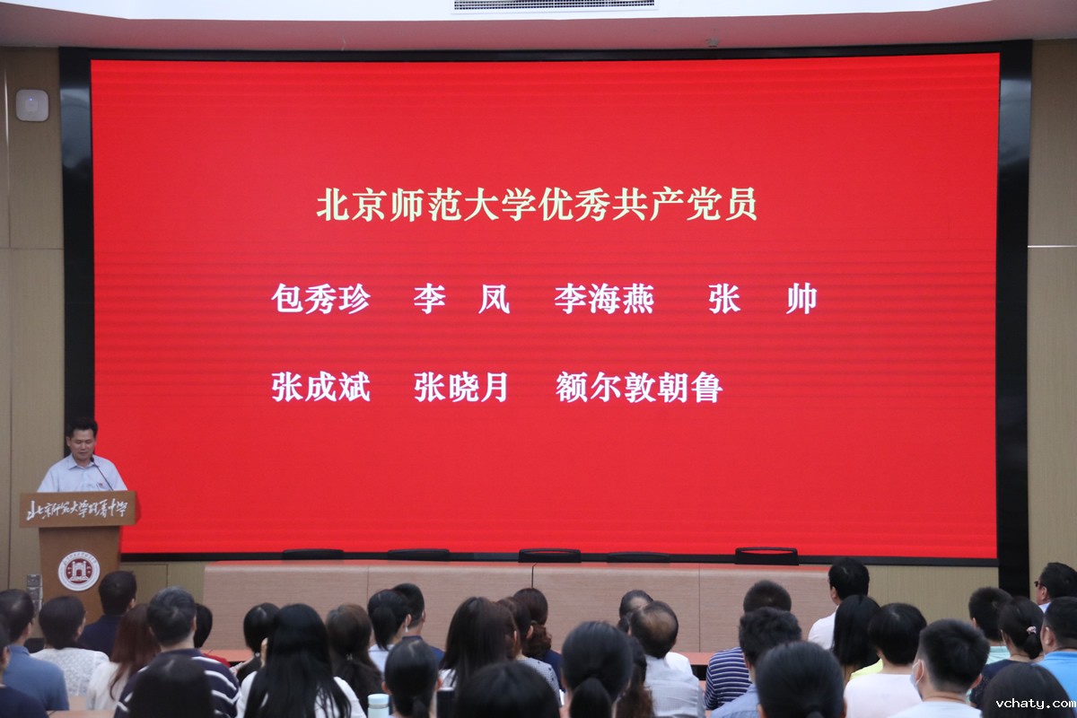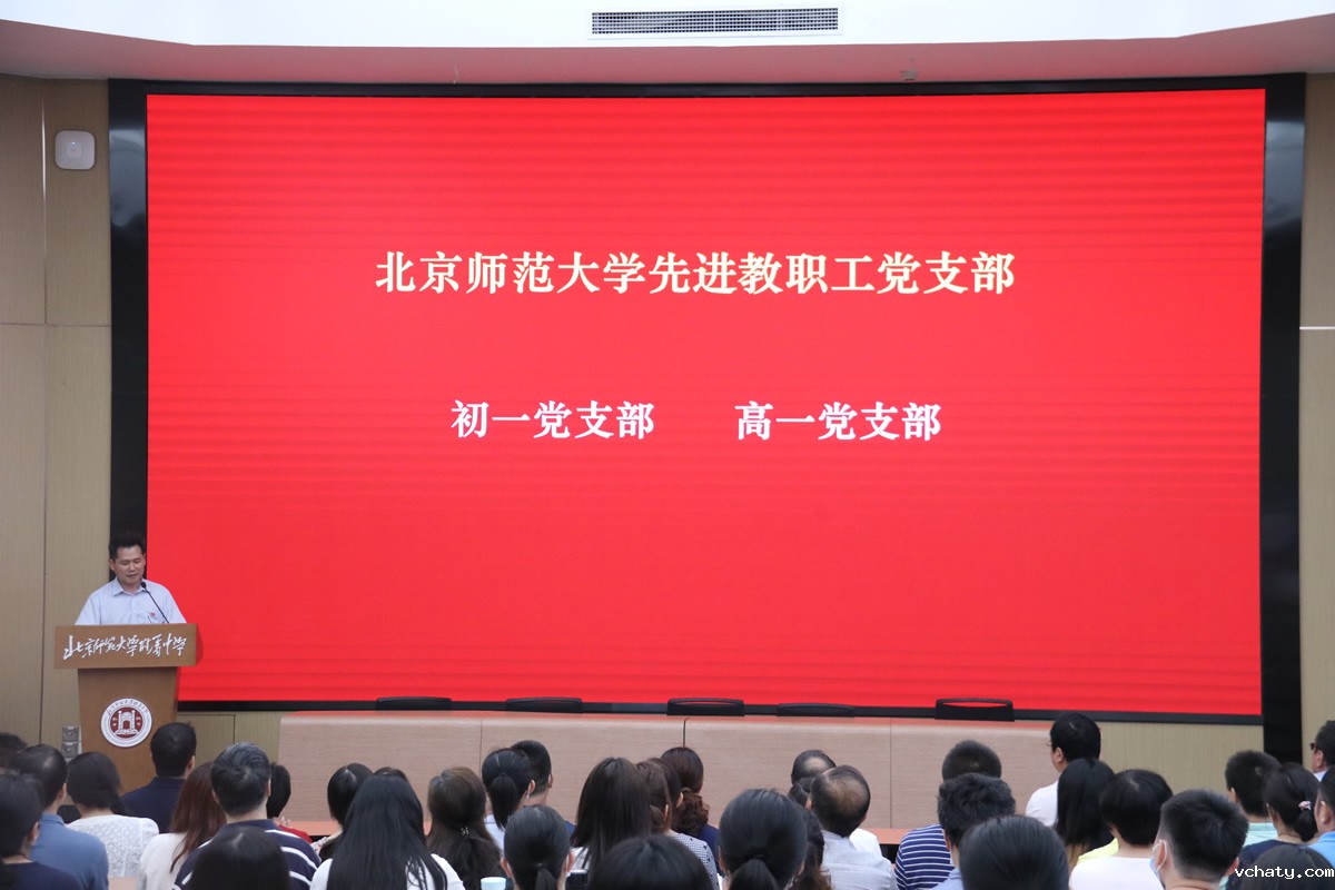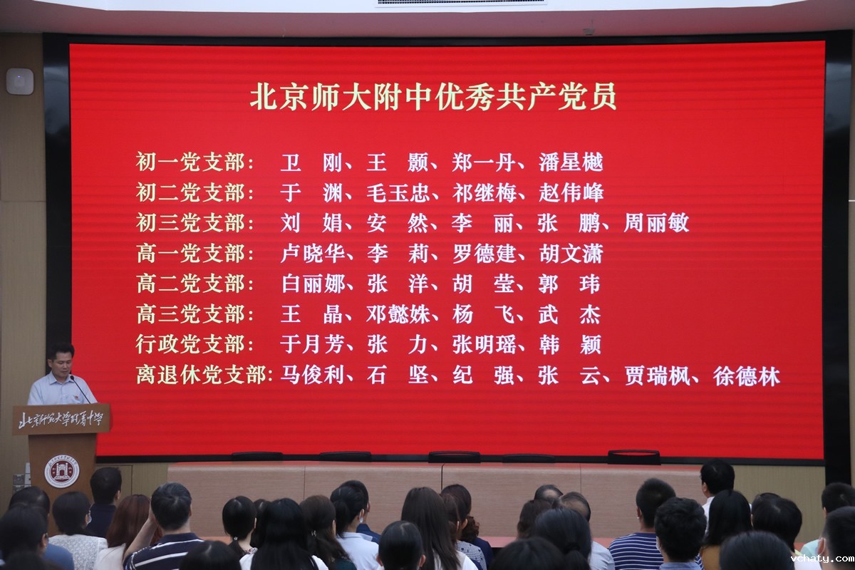 梁原草副校长代表学校党委宣读《中共新伟德平台官方委员会关于表彰优秀共产党员的决定》,三十五位老师获得“新伟德平台官方优秀共产党员”称号。同时附中有两个支部荣获“北京师范大学先进教职工党支部”称号,七位老师荣获“北京师范大学优秀共产党员”称号。