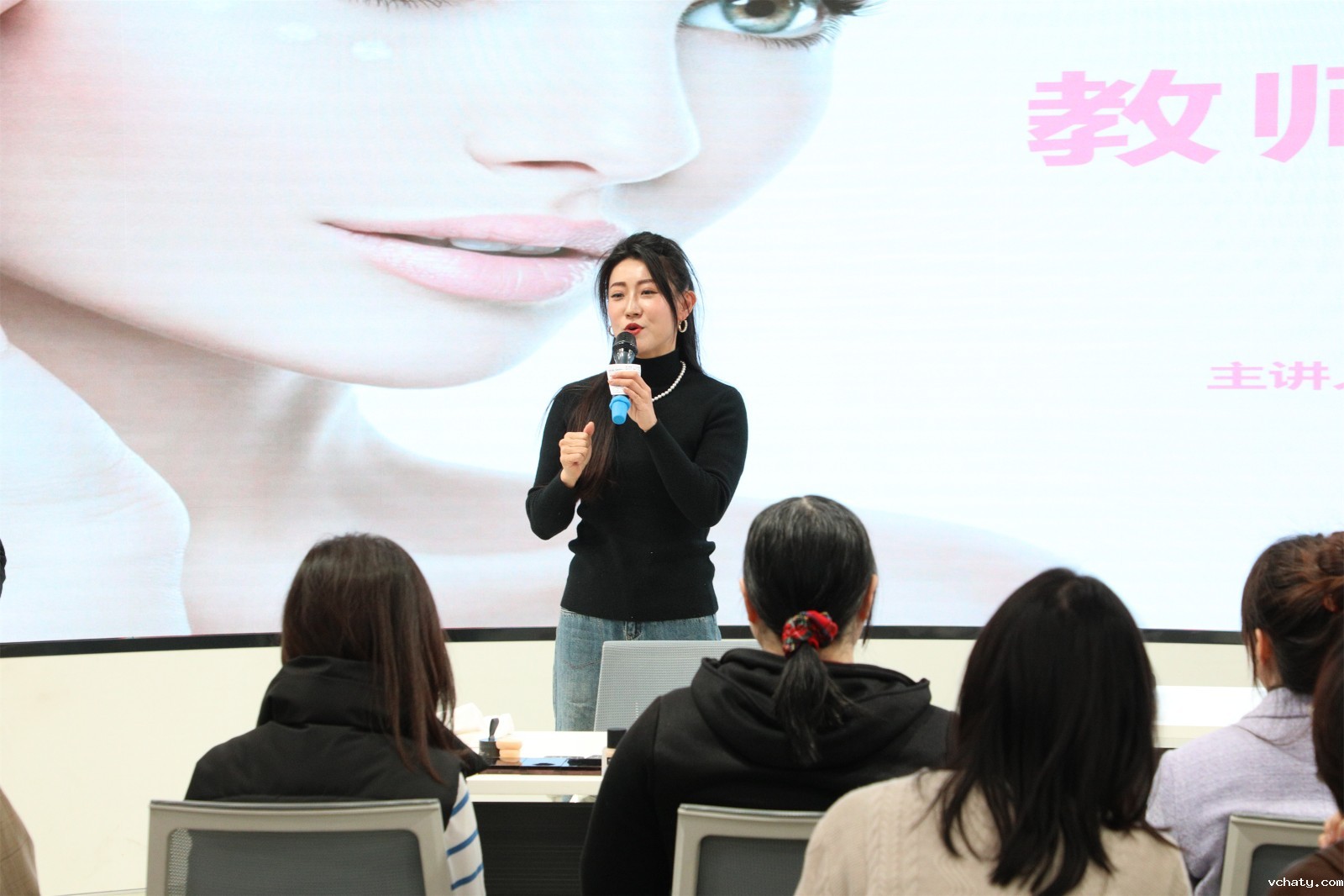 在“三·八”国际劳动妇女节到来之际,校工会为全体教师举办了一场以“遇见更美的自己”为主题的特色活动——特邀国家级高级化妆师、CCTV首席形象造型师丛艳女士带来一场别开生面的“形象设计”附中专场培训课。
