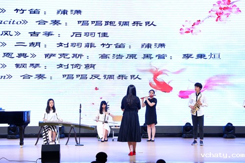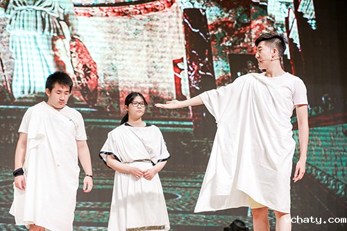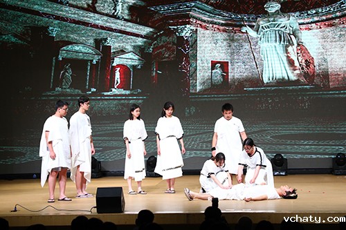 隆重的仪式之后,AP毕业演出在民族乐器和西洋乐器合奏表演《唱唱跑调》中拉开帷幕。随后,AP学生们演绎了莎士比亚的经典剧目《仲夏夜之梦》和《凯撒大帝》。全年级四十多名学生参与全英文表演,别致的服装道具、巧妙的剧情编排、演员们的生动表演,带给了观众一场全新的视觉盛宴。此次演出活动,使在场师生和家长不仅感受到莎士比亚戏剧的艺术造诣,而且体会到英语语言文学的巨大魅力。演出的最后,学生们倾情奉献了歌曲串烧《不说再见》,表达了学子们对母校老师、同学们的眷恋之情。