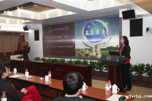 2012年3月16日下午,应国家汉办许琳主任之邀,刘沪校长、李敏副校长率我校20余人教师团访问国家汉办孔子学院总部。我校4位教师荣登学院大师级学术殿堂――名师讲堂,为汉办领导和全体员工做了“国家汉办培养锻炼了我们……”的主题汇报。