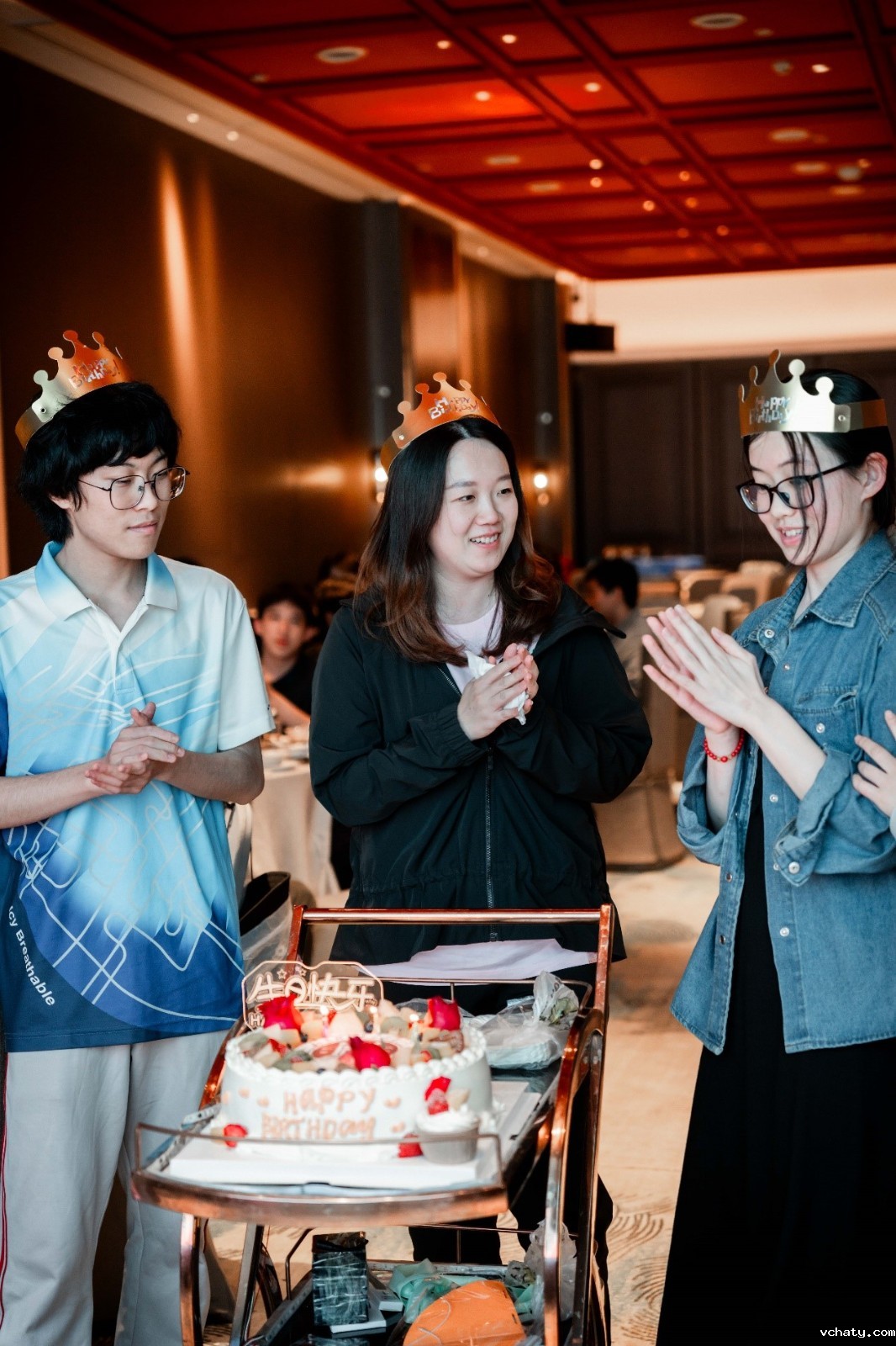 晚餐时间同学们为三位在五月过生日的老师和同学举办了生日会,不仅为寿星们准备了可口的生日蛋糕,还举行了一场简短、热闹而温馨的庆祝仪式,部分同学登台演唱,献上最诚挚的生日祝福。