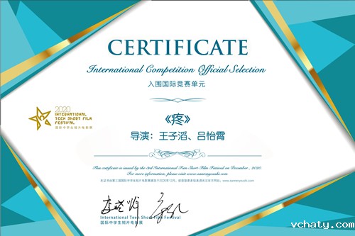 2020年12月12日,第三届国际中学生短片电影展颁奖典礼在北京师范大学附属实验中学举行。我校王子滔同学与山东省烟台第二中学的吕怡霄同学共同创作的短视频作品《疼》入围第三届国际中学生短片电影展国际竞赛单元并荣获“观众选择奖”。指导教师为信息组张建彬老师。