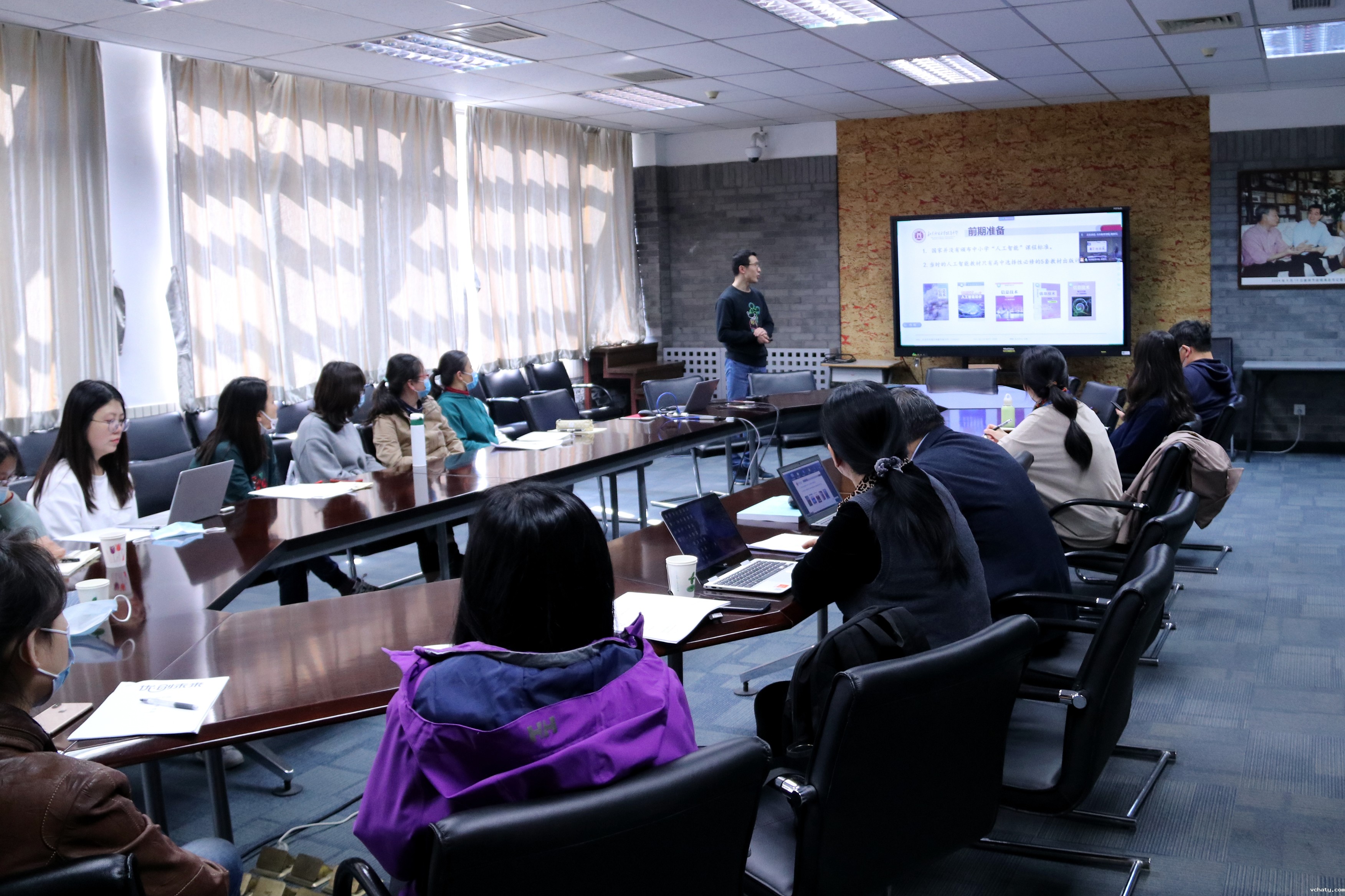 我校信息教研组的张建彬老师对课题《中学阶段人工智能课程校本化教学案例研究》进行结题陈述。他分别从目的、内容、形式和资源等多个方面对在中学阶段应该如何开设人工智能课程进行了阐述并详细介绍了课题的研究意义和价值、研究过程及成果。我校信息教研组多位老师参与了《中学阶段人工智能课程校本化教学案例研究》这一课题的研究,承担了文献综述、课程开发、教学设计、经验推广等工作。