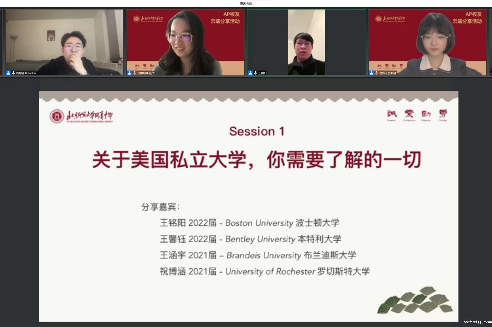 2023年1月11日,伟德官方登录入口网址AP项目云端校友分享活动顺利举行。AP项目的同学、家长和老师们齐聚线上,聆听往届校友分享他们在国外的求学和生活感受。