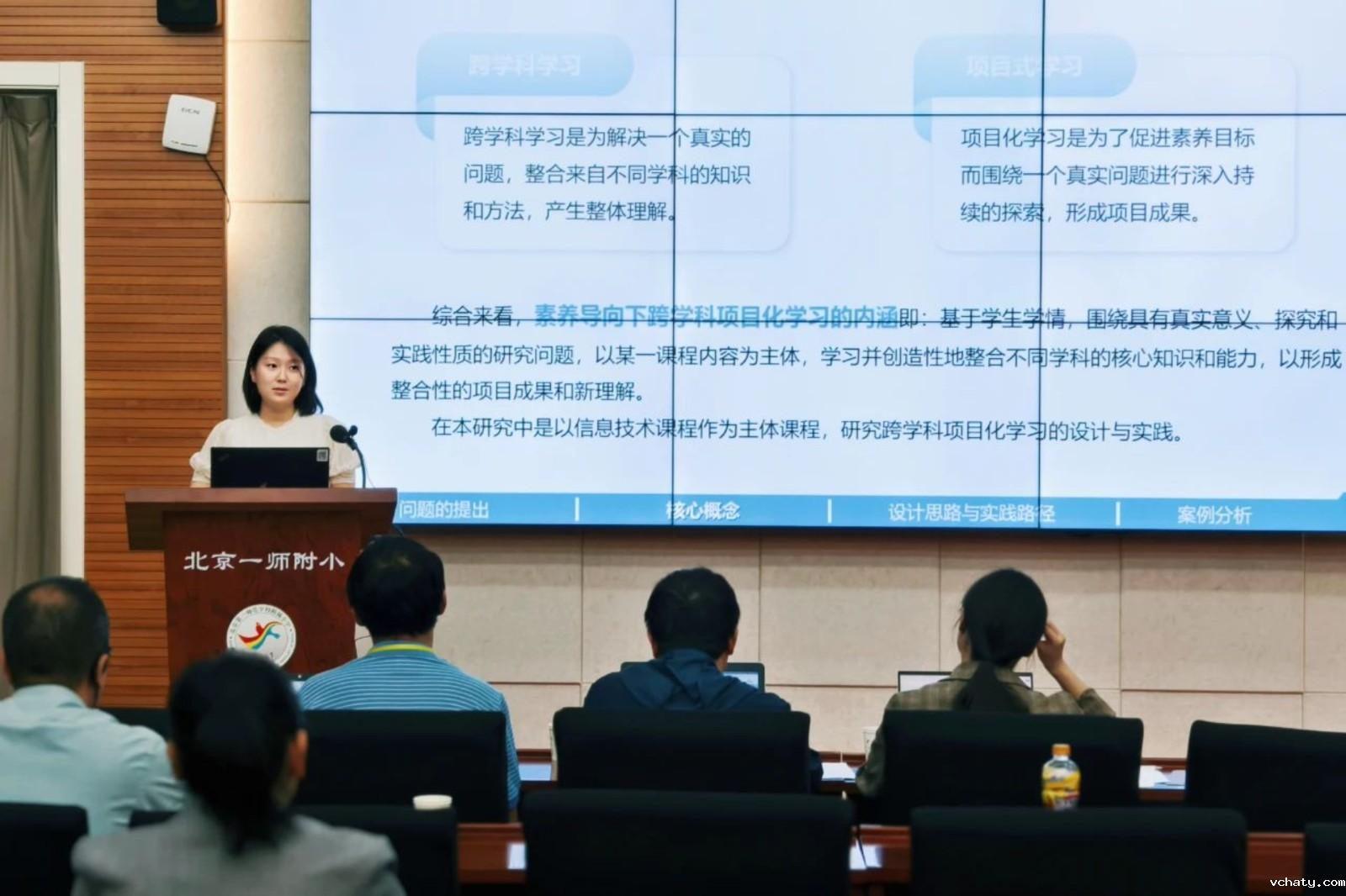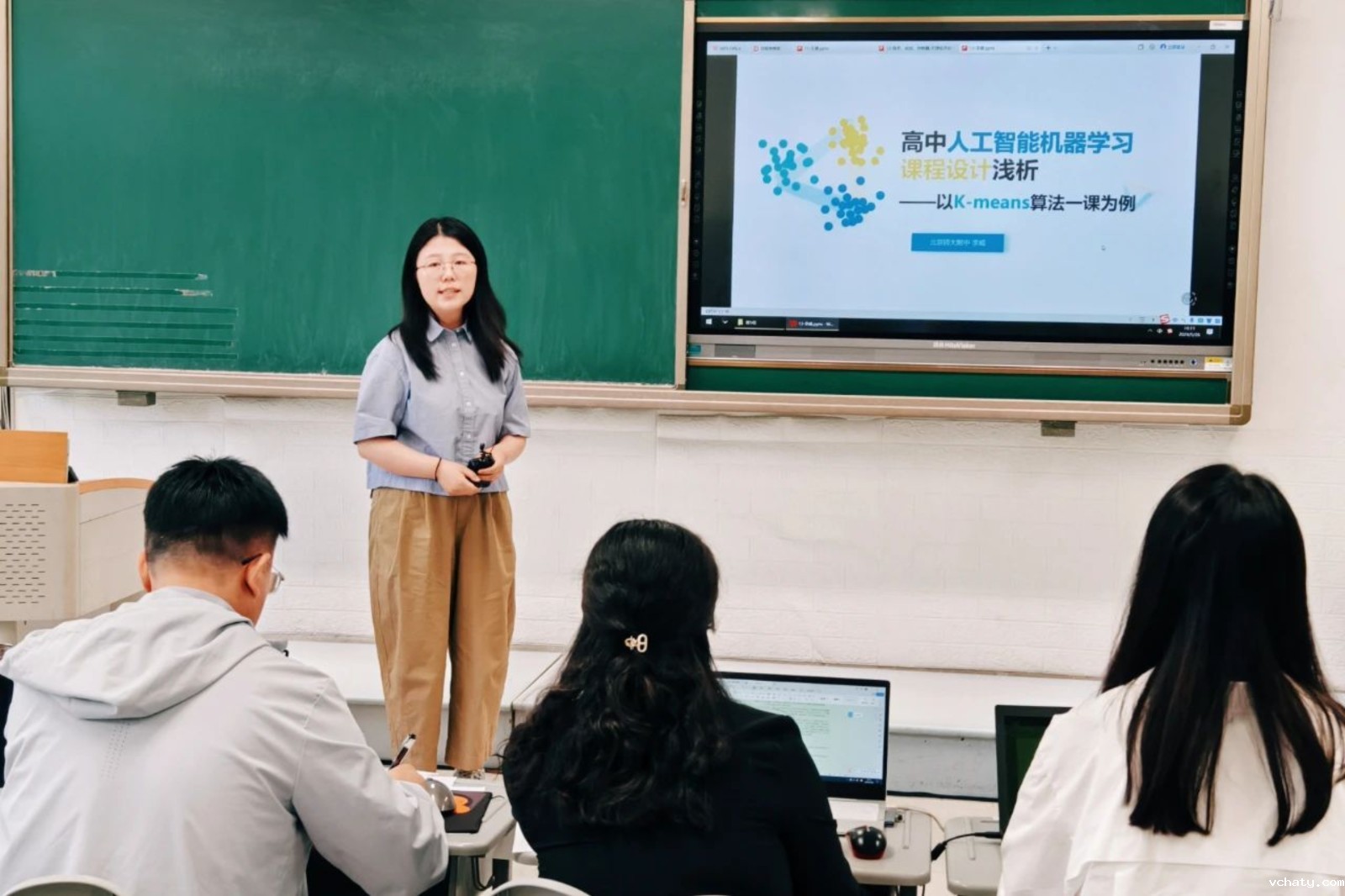 在教研论文展示环节,李威老师的文章《高中人工智能机器学习课程设计浅析——以K-means算法一课为例》从机器学习的内容结构入手,以K均值算法一课为例,从课程设计、算法教学、案例实践等方面提出机器学习课程设计相关建议并进行案例分析。周思博老师的文章《核心素养视域下的信息技术跨学科项目学习设计与实践——以人工智能项目《解锁附中校园之旅》为例》以培养中学生核心素养为导向,提出素养导向下信息技术跨学科项目化学习的设计思路与实施路径,并以《解锁附中校园之旅》的人工智能跨学科项目化学习活动案例展开分析。经过老师们的精彩阐述和答辩,两篇文章均获得教研论文展示一等奖。