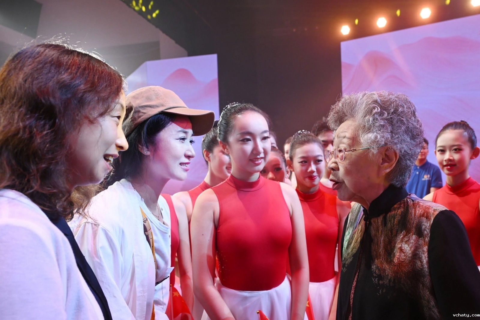 本次教师节汇演,我校舞蹈团成员与90岁高龄的黄会林老学长同台。演出后两代附中学子亲切交流,作为北京师范大学艺术与传媒学院的创立者黄会林学长对金帆舞蹈团成员们的演出给予高度评价,同学们也被黄会林学长在汇演上的讲述深深打动。两代附中学子虽然成长于不同的时代,但附中精神与情怀始终引领着我们在追光的道路上不断前行。
