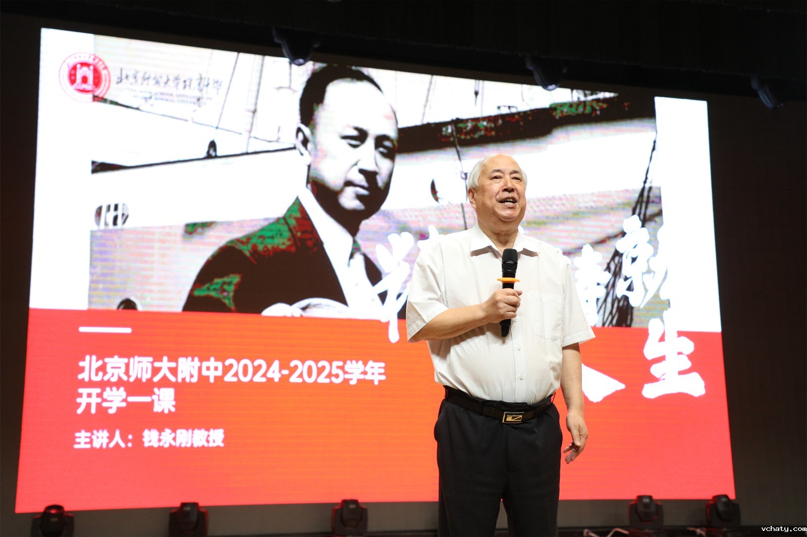 9月6日下午,附中百年会堂里掌声如潮,激情如歌。我校杰出校友钱学森院士之子钱永刚教授以《精神铸就人生》为题,为附中学子上了一堂生动的开学一课。开学一课由学校党委副书记况莉主持,初三年级全体学生现场聆听。