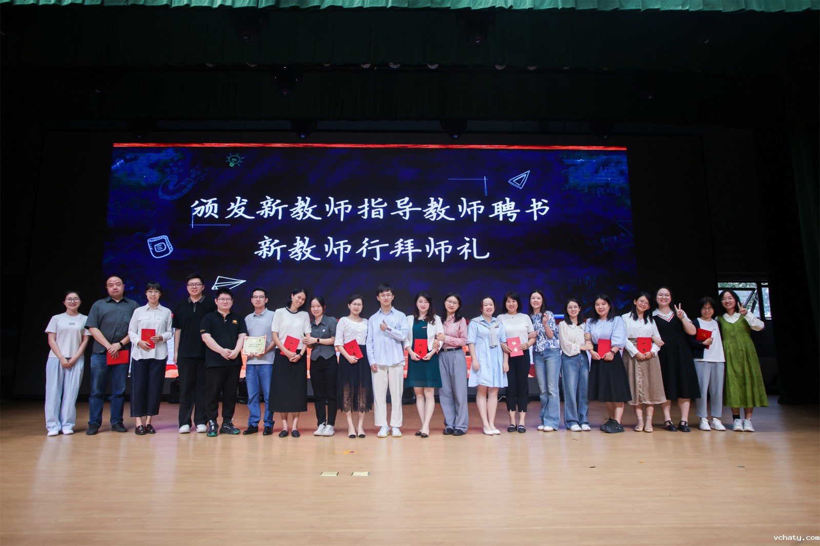 在欢迎新教师环节,新教师们逐一亮相并接受了王莉萍校长和许建勇书记颁发的“新芽吐绿”纪念章。随后,李华艳副校长宣读了师带徒名单。会上举行了新教师教学指导教师和班主任指导教师的聘书颁发仪式及拜师仪式。这一环节不仅体现了附中对新教师的重视和关怀,也彰显了学校在教育传承方面的坚定决心。