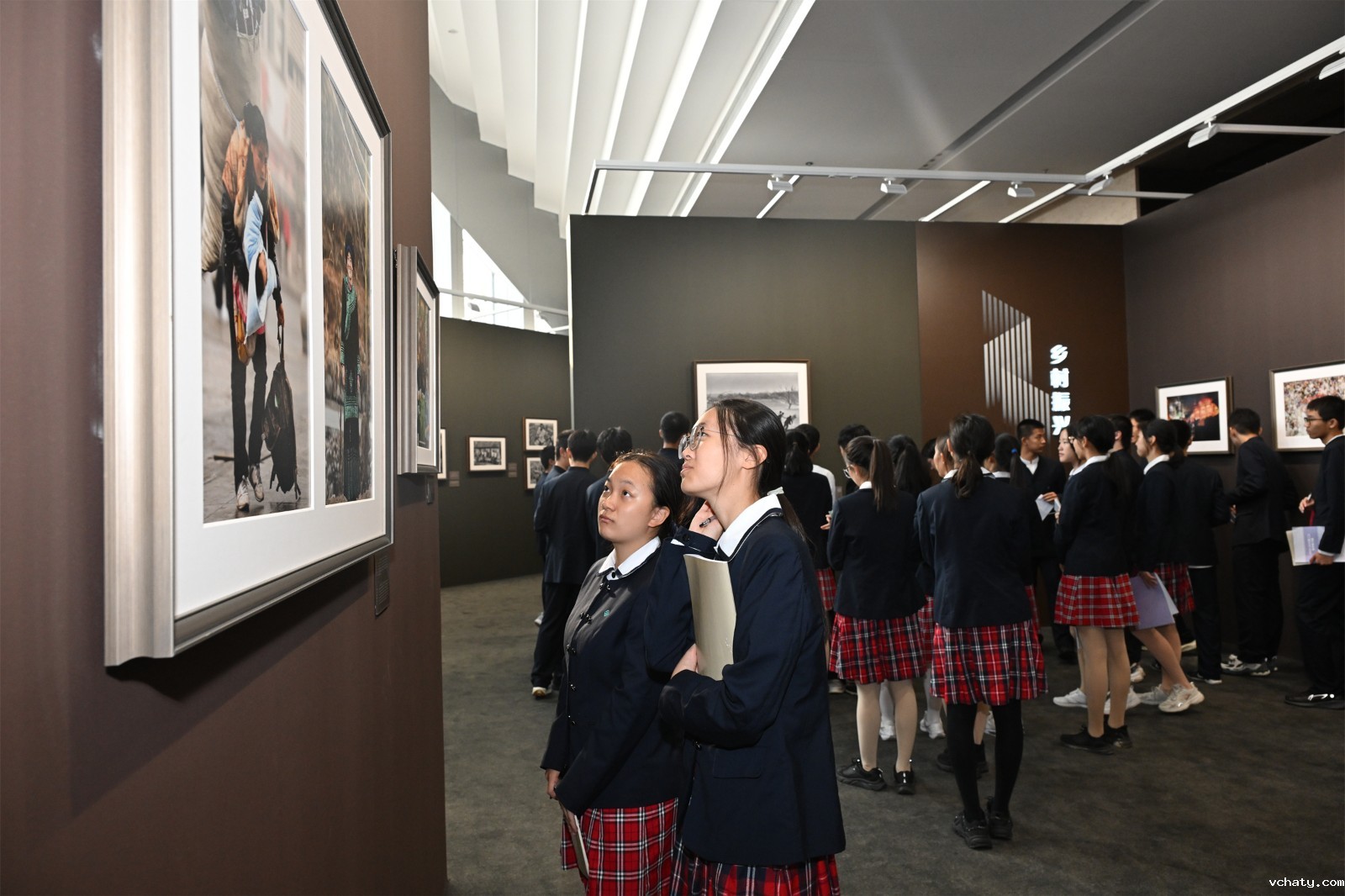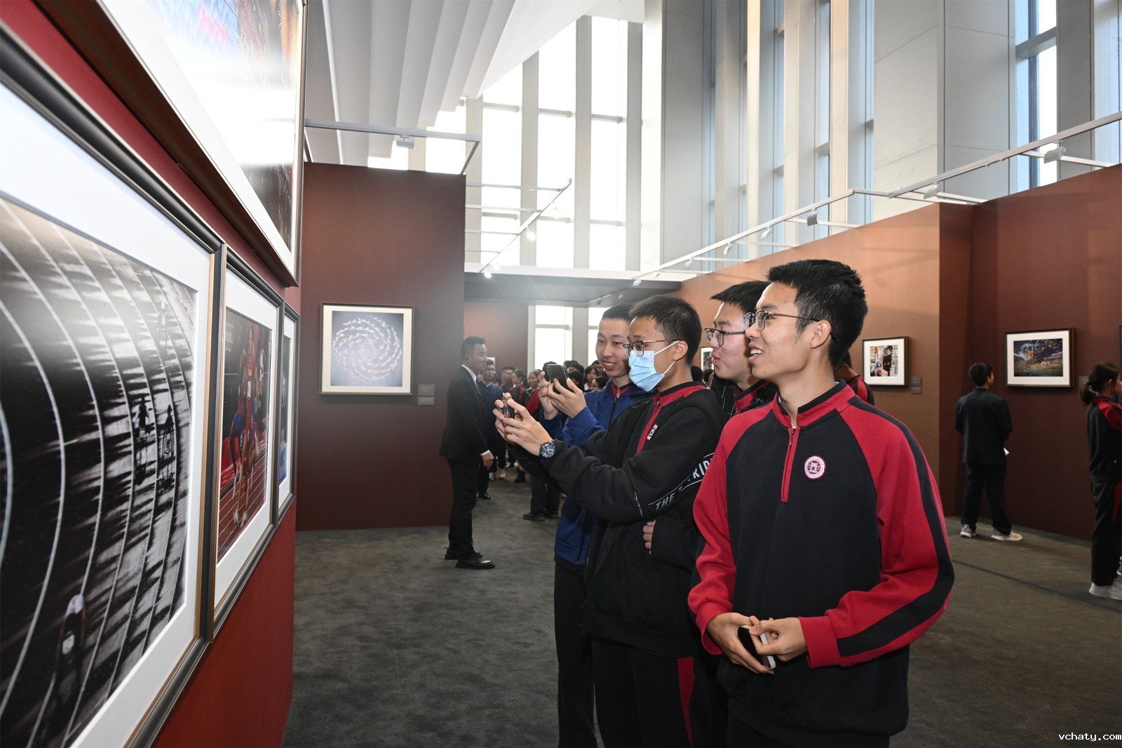黑白胶卷定格下芭蕾舞演员深入农村表演《白毛女》时的翩翩舞姿,抓拍瞬间刻画出16岁体操运动员吴佳妮飞越高低杠时的坚毅眼神,一大一小两只手指尖相碰,记录下中国救援队跨越国界传递的爱与信念……一张张照片记录着过往的奋斗征程,更书写着当下的壮丽篇章。同学们驻足于一张张照片前,感慨于劳动人民纯朴的笑脸,震撼于祖国大地壮美的河山,惊叹于巧妙生动的构图设计,沉浸于照片背后的难忘故事。