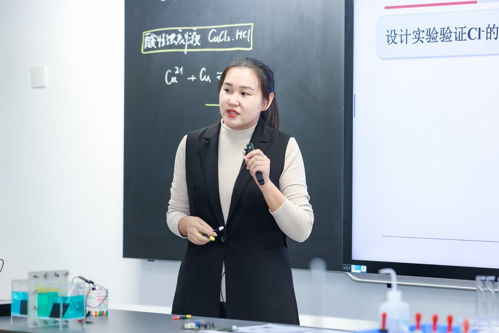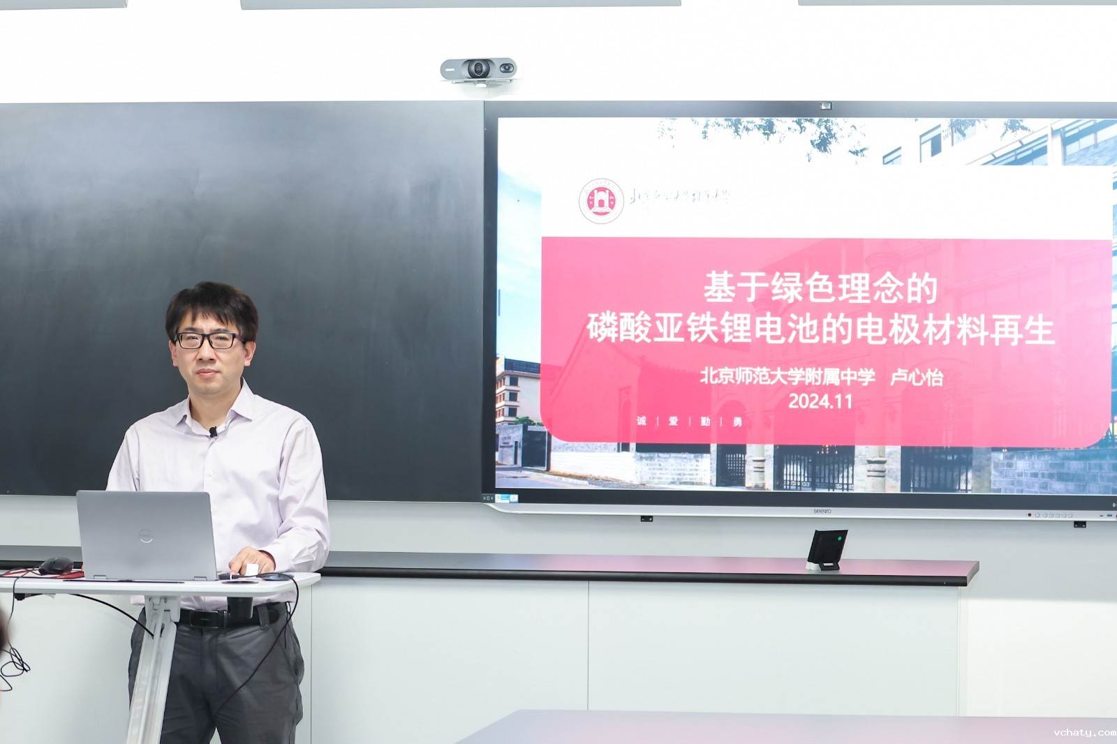 本次专场活动首先展示了三节研究课——佟薇老师的《走近芯片——沙粒成“芯”》、耿彩伟老师的《基于绿色理念的蚀刻液应用及再生》和卢心怡老师的《基于绿色理念的磷酸亚铁锂电池的正极材料再生》。在这三节课上,附中教师借助课堂实验,增强学生注重求证、严谨求实的科学态度,以及勇于思考、敢于质疑的科学精神。