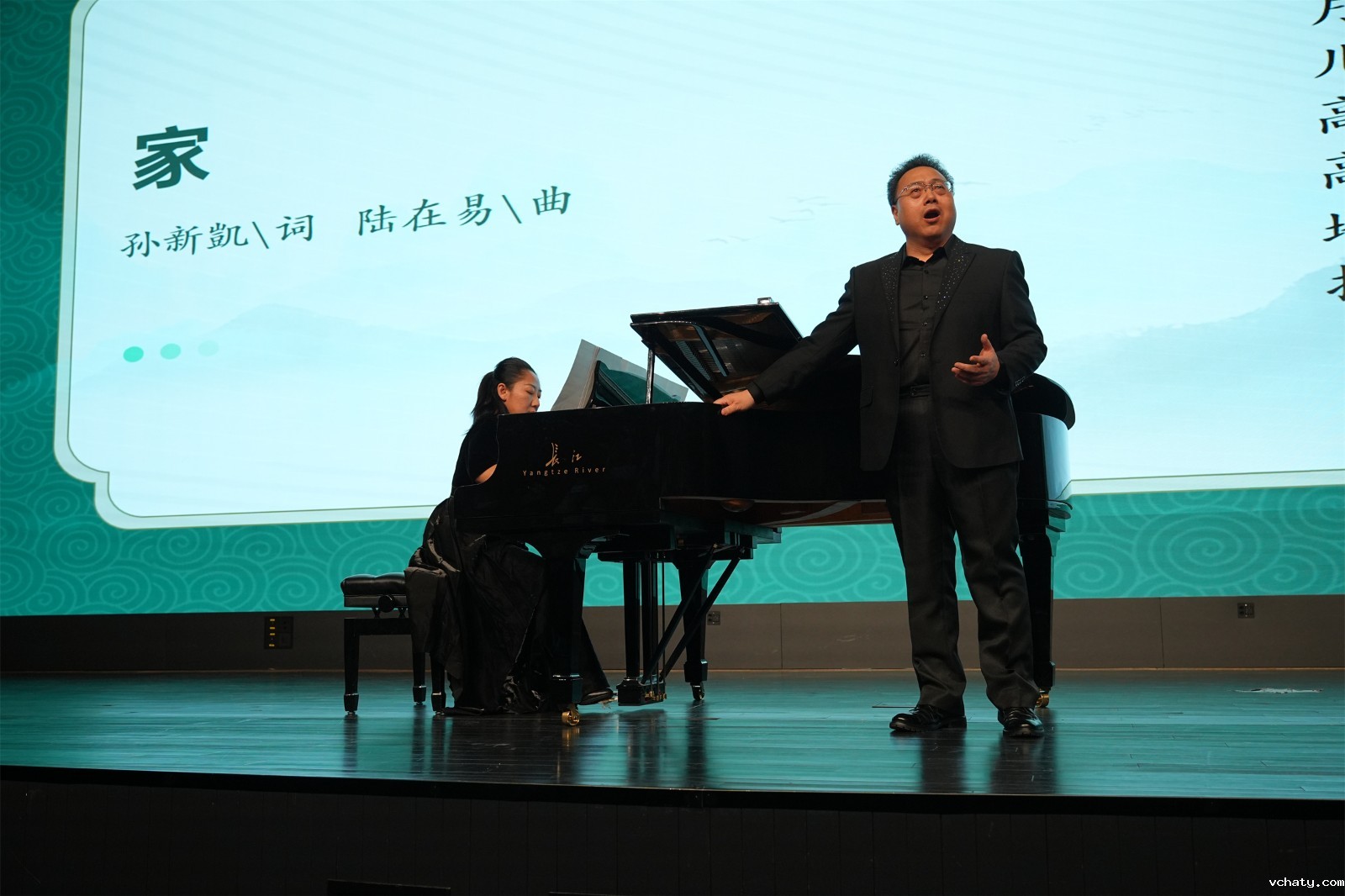 2024年12月16日下午,由艺术组策划、艺术教研组长齐宏老师担任导赏和男中音独唱、周红苇老师担任女高音独唱的“我爱这土地”中国艺术歌曲导赏音乐会在我校黑匣子剧场举行。音乐会还特别有幸请到中央音乐学院继续教育学院杨也老师担任钢琴艺术指导。