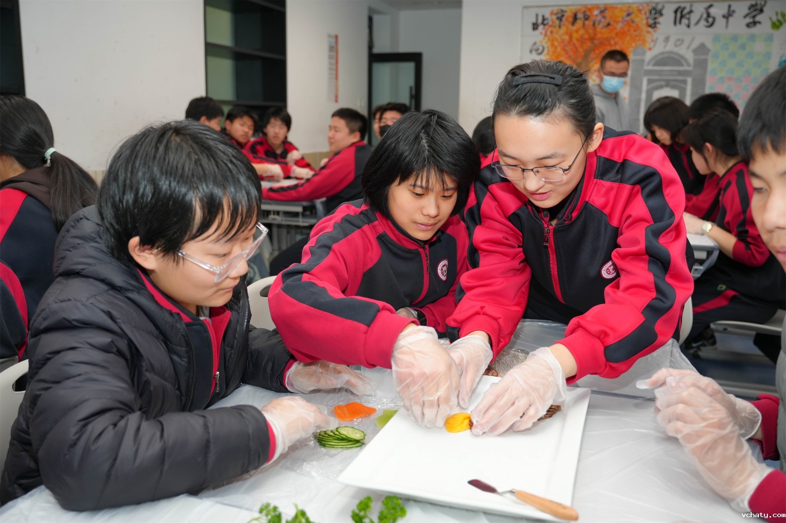 2024年底,中国申报的“春节——中国人庆祝传统新年的社会实践”被成功列入《人类非物质文化遗产代表作名录》。2025年新春在即,高一年级充分挖掘周边老字号文化资源,邀请全聚德的专业师傅们走进校园,指导同学们制作极具中国传统文化底蕴的特色美食拼盘,以增进学生对春节传统、饮食文化的了解,增强学生继承与发扬中国传统文化的意识。