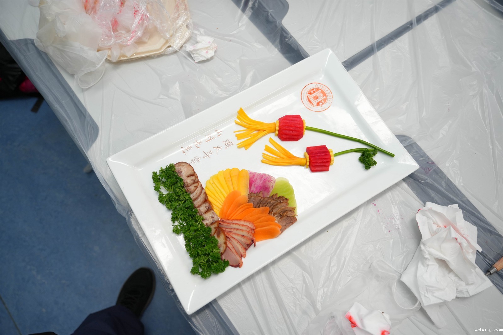 此次活动共设计了《鸳鸯戏荷》《迎新春》《花开富贵》三个“迎新春”主题的美食拼盘。活动现场,师傅们为同学们悉心讲解冷菜拼盘中的传统文化设计元素和制作方法。洁白的餐盘宛如等待创作的画布,同学们早已按捺不住内心的激动,跃跃欲试。