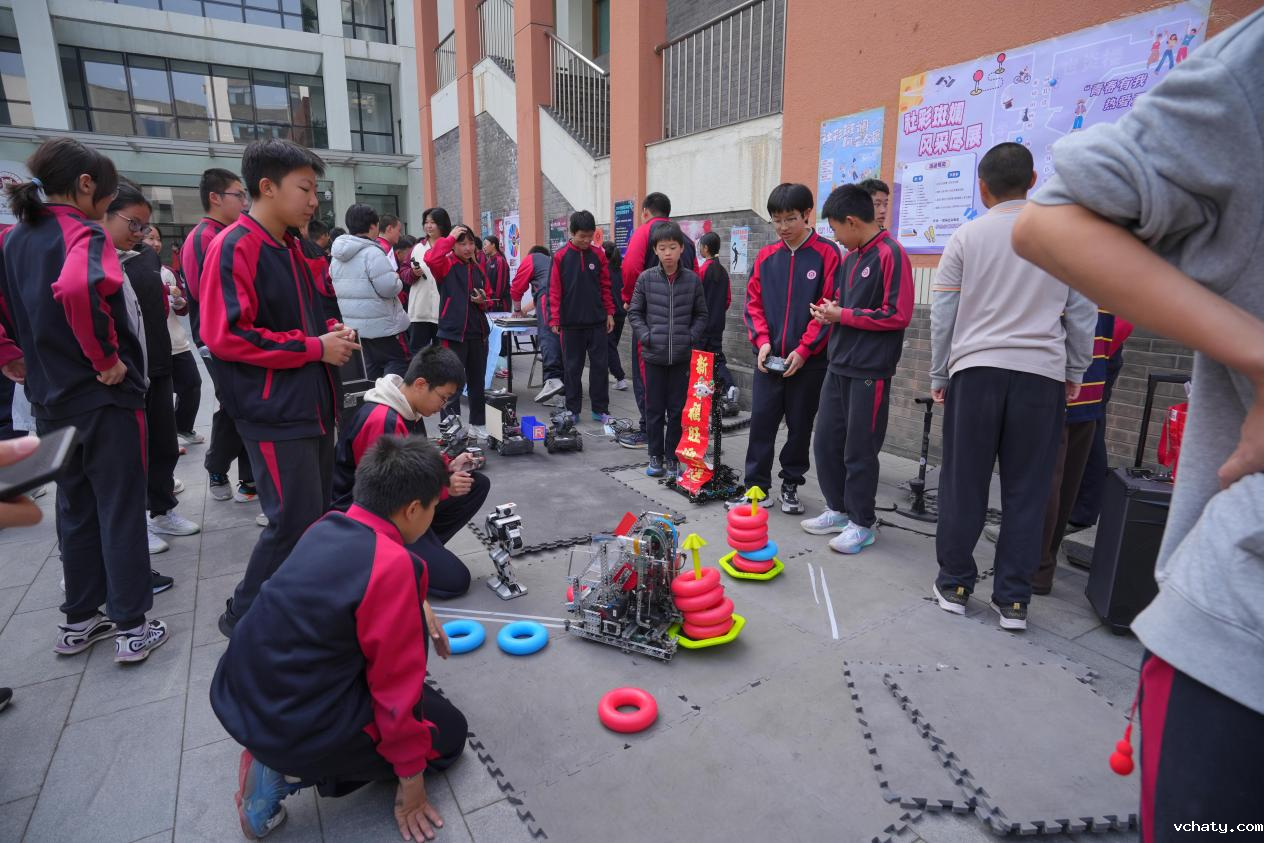 物候社与种植社将自然微缩成景,用丰富的植物体验活动和动植物知识问答带领同学们在叶片脉络间读懂四季密码,感受着自然的神奇与魅力;我校金鹏科技团生命科学分团展示的生物标本与知识实景展板,为有志于探索生物奥秘的同学打开了兴趣之门。金鹏科技团机器人分团的机甲战士灵活使用机械臂完成套圈等高精度动作,博得同学们的阵阵惊呼。LST研习社的同学们将化学实验材料搬到了现场,通过为同学们做实验来直观展示有趣的化学反应。在这里科学不再是课本公式与平面图纸,而是触手可及的奇妙邂逅。