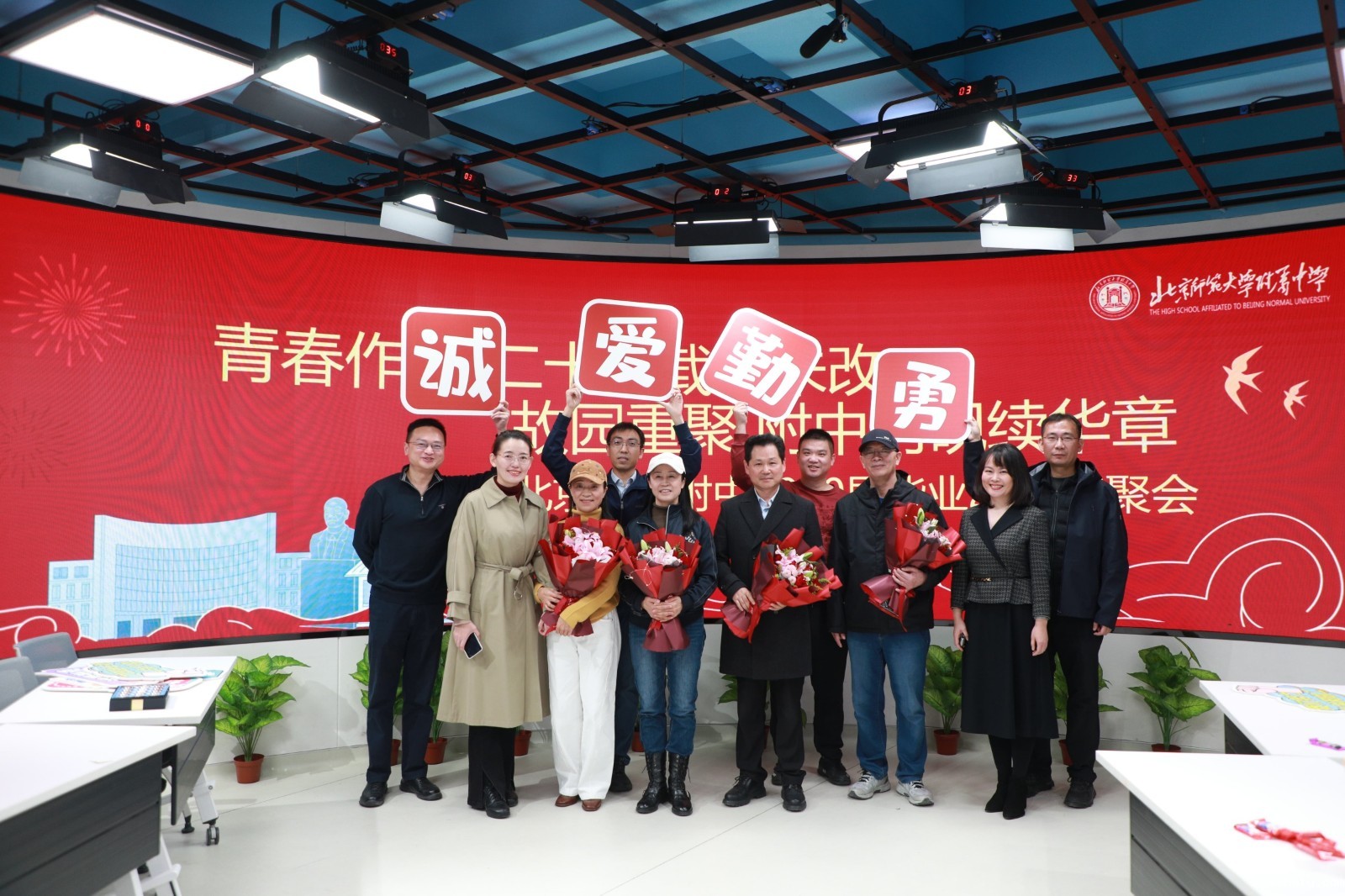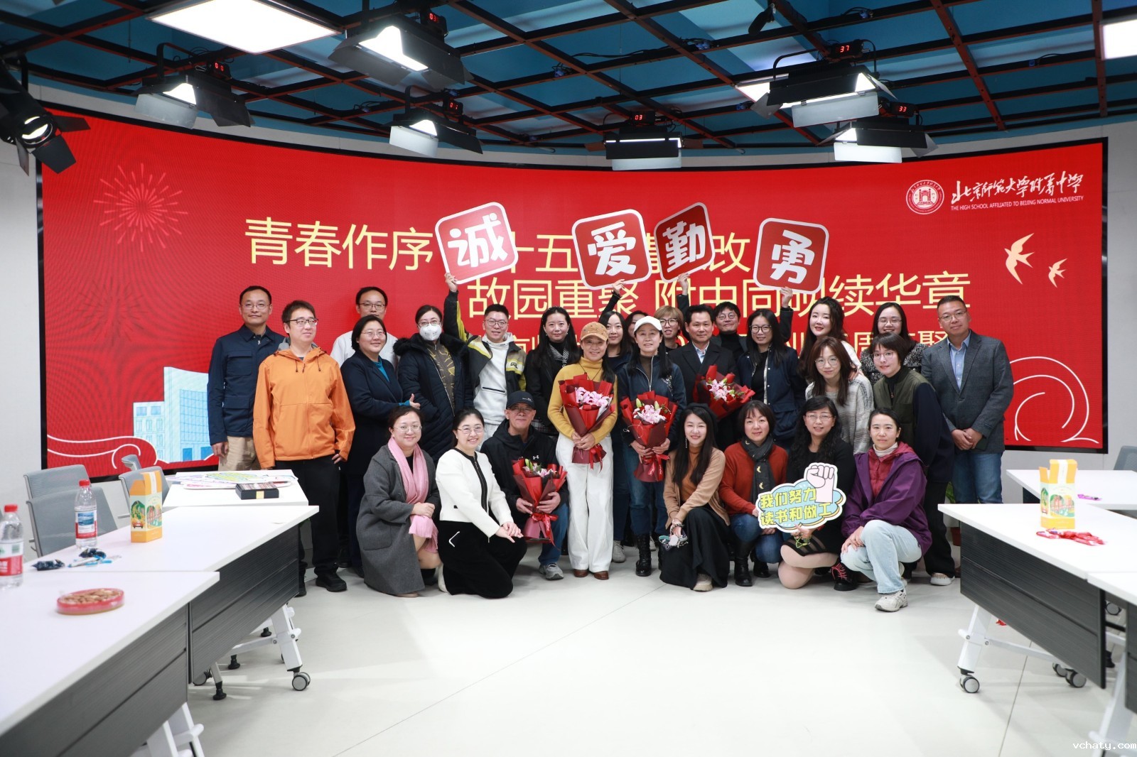 温情时刻,校友们手捧鲜花,依次走到老师面前,深深鞠躬,将鲜花献给自己敬爱的恩师,表达多年来的感恩之情。活动最后,校友们按当年的班级分组合影留念,大家亲昵地搭着肩膀,脸上洋溢着灿烂的笑容,定格下这珍贵的瞬间,并约定125周年校庆时再相见。随后,全体校友与老师们共同拍摄大合照,“我们爱师大附中”的“告白”响彻校园。