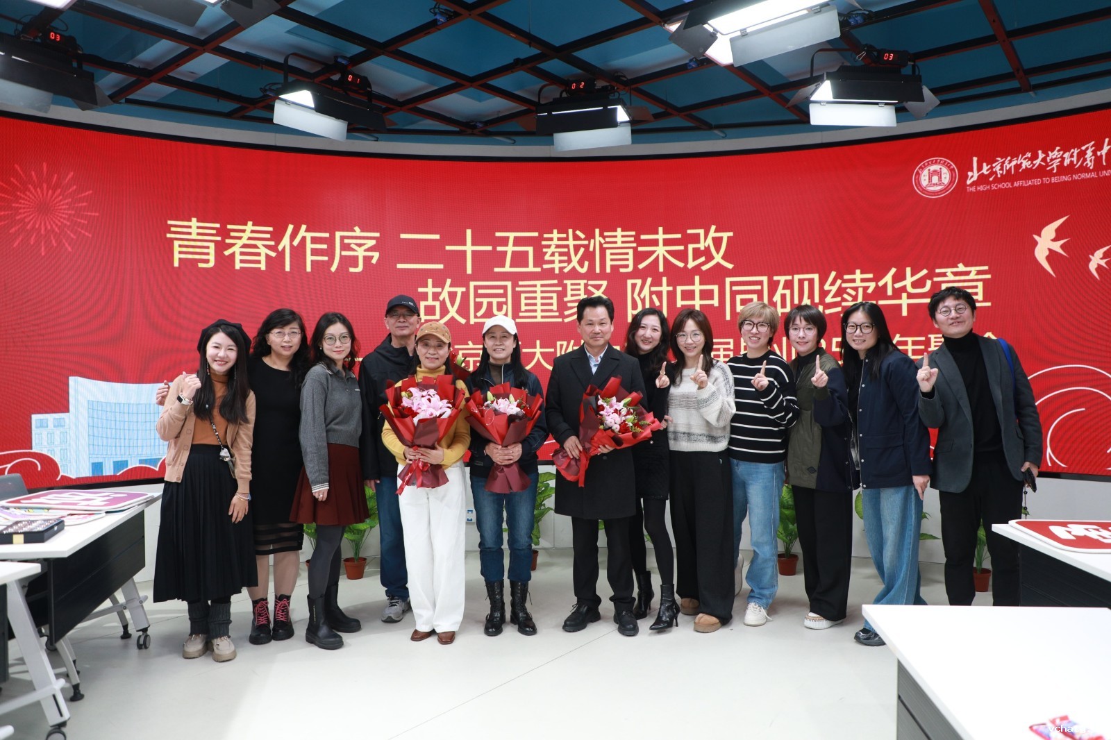 当年的授课教师梁原草、邓虹、黄占宁、武杰也来到现场,看着如今事业有成的学生们,老师们敞开心扉,与同学们说了说心里话。梁原草老师说,同学们学业有成、事业有成、家庭幸福,能对国家建设、乃至人类进步事业做出贡献,这就是我们老师的目的,附中的功能、老师们的价值就体现在这些地方;邓虹老师提到2000 届是她回国工作后带的第一届学生,有些遗憾没能以更成熟的教学水平陪伴大家成长,今天看到同学们如此优秀,感到由衷的骄傲;体育老师黄占宁笑称:“来之前我还犯嘀咕,带过的学生太多,怕认不出大家,可一进这个门,看到你们熟悉的眉眼,一下子就回到了当年带你们跑操、练体育的日子”;武杰老师至今仍坚守在教学一线,她以自身经历鼓励大家把附中体育课上学到的、练就的东西带到生活中,加强锻炼,保持良好的体态,争取再过10年、20年还能保持现在的样子。