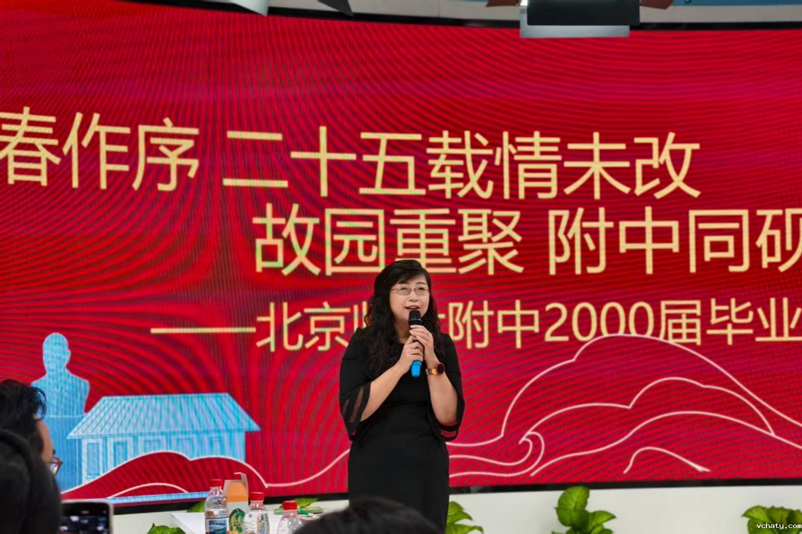 聚会活动由金磊校友主持。暖场环节,一段段精心制作的怀旧视频缓缓播放,瞬间将现场校友带回到二十五年前的青葱时光。屏幕上,当年联欢会上老师们合唱《我的中国心》的年轻身影依旧鲜活,一张张泛黄的老照片记录着课堂上的专注、运动场上的拼搏、课间里的欢笑。每帧画面都勾起校友心底最柔软的回忆,现场不时响起感慨与掌声。