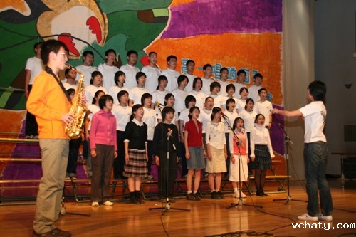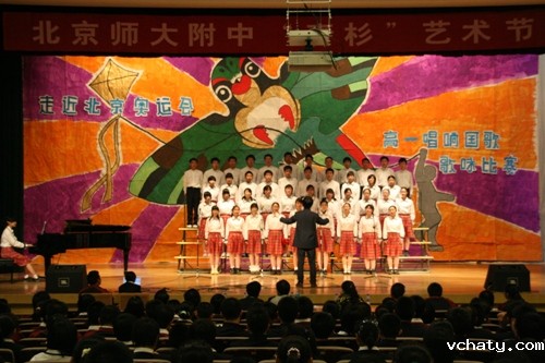 4月3日下午,我校在礼堂举办了“唱响国歌”高一年级歌咏比赛。这次大赛由高一年级组和校团委联合主办,是本届“青杉”艺术节的又一项重大赛事,也是为迎接北京奥运会而开展的一项爱国主义教育活动。比赛要求必须演唱一首国歌或者校歌,另一曲目自定。担任评委的有艺术组齐宏老师、张秀玲老师、陈卓老师以及冯希奇老师。高一9班以精彩的演出获得一等奖;高一6班和11班获二等奖。赛后,齐宏老师做了点评;刘沪校长和王玉清校长为获奖的班级颁发了奖状。