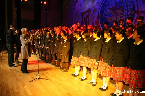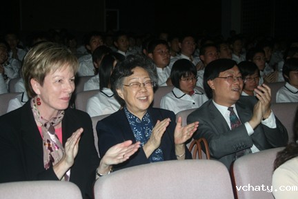 10月8日下午,姊妹校澳大利亚悉尼女子高校4位老师和49位同学在Margaret Varady校长的带领下来我校进行友好交流,两校同学同台演出精彩的合唱、舞蹈和管弦乐演奏等节目,北师大艺术与传媒学院院长黄会林教授应刘沪校长邀请出席联欢会。