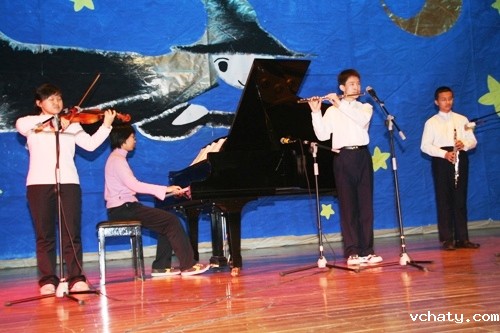 2006年岁末,我校“百年会堂”里不断传出欢歌笑语,各年级新年联欢会正在这里演绎。学生们精心排练了一台台精彩的节目,学生们的艺术才华在这里展示。礼堂里,同学们高举着双手在挥舞,热情洋溢的在呼喊,焕发青春的激情在倾泄,这里是欢乐的海洋,是心灵的聚会。喜迎新春的元旦联欢会,展现了附中学子良好的精神风貌,进一步增强了师生们的凝聚力,为新的一年翻开了精彩的一页,为全新的一年绘出更加多彩的一笔。