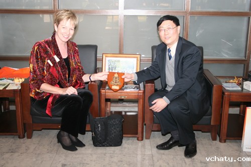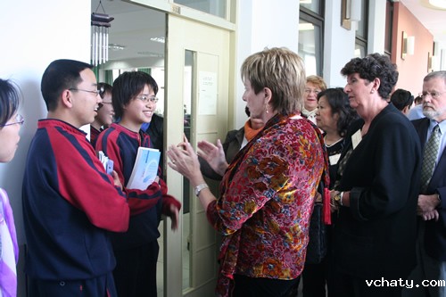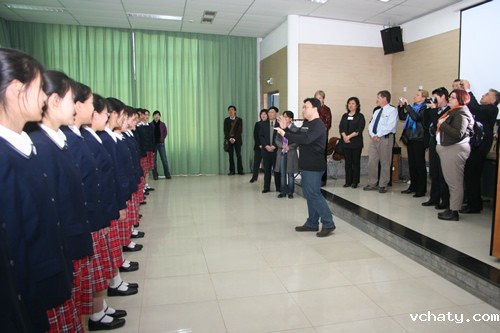 4月20日,姊妹校悉尼女子高中教师访问团一行20人在校长Margaret Varady女士的带领下来我校访问,刘沪校长陪同客人们参观校园,校学生合唱团的同学们用优美的歌声迎接远道而来的朋友。客人们对我校师生的素质、设施的现代化和校园的整洁表示由衷的钦佩。